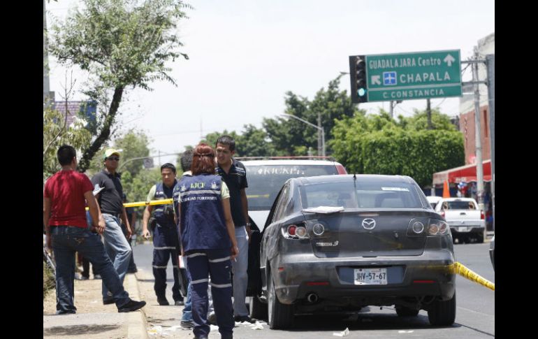 Jalisco | El fallecido iba acompañado de su esposa e hija cuando dos hombres le dispararon Ejecutan a un hombre en la ZMG El fallecido iba acompañado de su esposa e hija cuando dos hombres le dispararon en dos ocasiones en el cráneo Por: EL INFORMADOR 23 de abril de 2013 - 18:01 hs En la escena del ataque fueron encontrados cuatro casquillos del calibre .45 como evidencia del homicidio. / GUADALAJARA, JALISCO (23/ABR/2013).- Un hombre fue ejecutado en presencia de su esposa e hija cuando circulaban por la colonia General Real de Guadalajara. Los hechos ocurrieron la tarde del martes, en el cruce de las avenida Revolución y Constancia, en agravio a un sujeto de aproximadamente 30 años de edad, quien viajaban en un auto Mazda 3 gris, con placas de circulación JCX-63-42. No ha sido identificado. Él iba acompañado de Jennifer Monserrat Mireles Frías, de 25 años, y su hija menor de edad. Le mujer resultó herida de un rozón por una de las balas disparadas. De acuerdo con elementos de la Policía de Guadalajara, las víctimas circulaban por la avenida Revolución en el sentido Oriente a Poniente, por el carril de alta velocidad, cuando se les emparejó una motocicleta aborda por dos hombres. Uno ellos, sacó un arma de fuego y disparó contra el hombre en cuatro ocasiones, quedando inconsciente. Dos balazos le penetraron el cráneo y dos más en los brazos. Tras esto, acudieron paramédicos de la Cruz Verde Ernesto Arias para atender al hombre, pero al estar recibiendo las atenciones prehospitalaria, falleció. Los agresores no fueron localizados, y solamente testigos mencionaron a las autoridades que ellos escaparon rumbo al Poniente de la Zona Metropolitana de Guadalajara; uno de ellos portaba un casco negro brilloso y su cómplice uno de color rojo. Posteriormente, acudieron agentes de la Fiscalía General del Estado para iniciar con las investigaciones del caso. En la escena del ataque fueron encontrados cuatro casquillos del calibre .45 como evidencia del homicidio. Temas Seguridad Ejecutados en Jalisco Fiscalía de Jalisco (FGE) Lee También EN VIVO: Maiceros bloquean carretera Guadalajara-Morelia ¿Qué exigen los productores de maíz? Aquí te decimos Liberan carretera Guadalajara-Morelia tras bloqueo de maiceros Así se ve la carretera Guadalajara-Morelia en cámaras del C5 tras bloqueo Recibe las últimas noticias en tu e-mail Todo lo que necesitas saber para comenzar tu día Registrarse implica aceptar los Términos y Condiciones