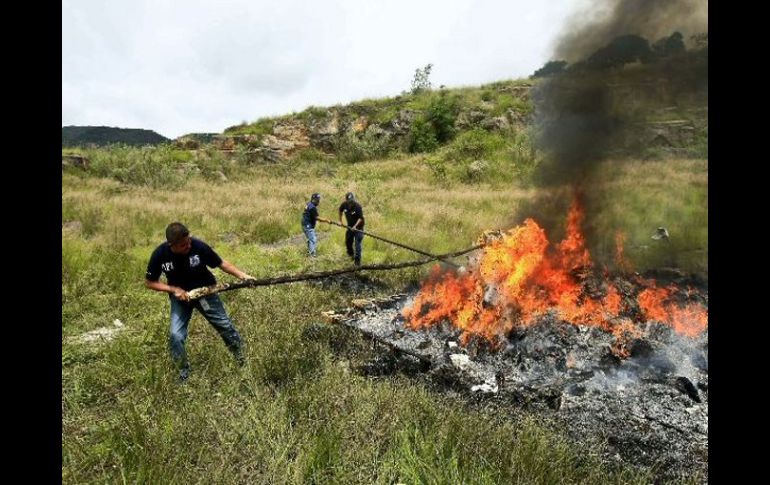 Jalisco | Suman 14 los laboratorios destruidos durante 2011 Ejército localiza narcolaboratorio en Ixtlahucán del Río Fueron decomisadas varias toneladas de sustancias químicas, droga, material diverso y un vehículo, en el Rancho 'Los Loera' Por: NTX 22 de febrero de 2011 - 12:32 hs Elementos de la PGR se encargan de la quema de droga. ARCHIVO / IXTLAHUACÁN DEL RÍO, JALISCO (22/FEB/2011).- Personal militar localizó un laboratorio clandestino para la elaboración de droga sintética en el municipio de Ixtlahucán del Río, y decomisó varias toneladas de sustancias químicas, droga, material diverso y un vehículo. La Décimo Quinta Zona Militar informó que en el Rancho "Los Loera" decomisaron cinco mil 410 litros de diversas sustancias químicas, mil litros de ácido clorhídrico y 750 kilogramos de sosa cáustica. Así como 600 kilogramos de sustancia química granulada de color blanca; 155 kilogramos de ácido tartárico, mil 300 kilogramos aproximadamente de sustancia granulada en estado sólido color café (AFA) . Además de 50 cubetas de plástico de 20 litros, 44 tambos de plástico de 200 litros, 17 tubos de ensayo grandes, 16 matraces grandes, nueve calentadores industriales, y siete motores con válvulas de presión. También seis extractores de aire, seis vaporeras metálicas de 40 litros, cinco centrifugadoras, cuatro hornos metálicos industriales, dos termómetros, dos básculas digitales, dos tanques de oxígeno, y un tanque de gas LP estacionario de 180 litros. Además decomisaron un vehículo tipo cisterna (pipa) con capacidad de 10 mil litros sin placas de circulación. Puntualizó que con el decomiso de este laboratorio clandestino, suman 14 los que se han destruido en la jurisdicción de la 15 Zona Militar durante este año, así como una bodega para almacenar sustancias químicas. Temas Seguridad Narcotráfico Decomisos de droga en Jalisco Municipios Lee También Empresarios esperan alza en generación de empleo Cartucho Desapariciones: empatía abollada ¿Sabrá el gobernador? Recibe las últimas noticias en tu e-mail Todo lo que necesitas saber para comenzar tu día Registrarse implica aceptar los Términos y Condiciones