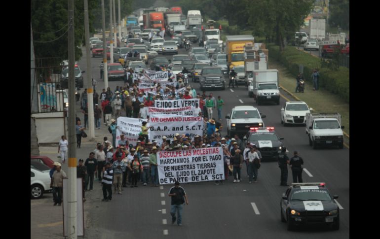 GUADALAJARA, JALISCO (19/OCT/2016).- Las acciones del Ejido El Zapote en demanda de la indemnización por sus terrenos, continuará, su presidente, Nicolás Vega Pedroza, advirtió que pretenden clausurar los negocios aledaños al aeropuerto y planean tomar las oficinas del Centro Jalisco de la Secretaría de Comunicaciones y Transportes (SCT).Ejidatarios de Santa Cruz plantean que será el viernes cuando se manifiesten en la SCT. "Después de esta manifestación esperamos que ya los abogados tengan los amparos correspondientes para empezar a clausurar los negocios que están alrededor, ¿qué habrá? Unos 40 o 50 negocios".La clausura de negocios la realizarían las autoridades correspondientes, "vamos a hacer que se los clausuren también, pero bajo órdenes de autoridades superiores, nosotros no vamos a hacer algo que no nos permita la ley", precisó Vega Pedroza.Por lo pronto, dijo, se mantendrá la presencia de ejidatarios en la central aérea tapatía, seguirán permitiendo el ingreso gratuito al estacionamiento, y no se permitirán las labores en las obras debido a que no se ha cumplido con la sentencia.No obstante, aseguró que el ejido está abierto al diálogo, aunque no han sido convocados nuevamente a una reunión para tratar de resolver el pago de los terrenos. En el anterior acercamiento funcionarios de la SCT les propusieron pagarles 30 millones de pesos, monto que no aceptaron.EL INFORMADOR / LETICIA FONSECA