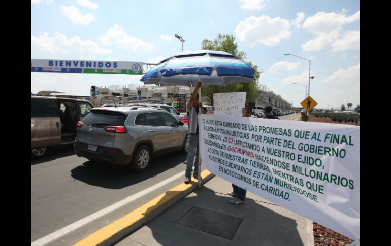 Jalisco | Colocan tractores en zonas de aduana, estacionamiento y llegadas internacionales Ejidatarios bloquean accesos al Aeropuerto de Guadalajara Manifestantes colocan tractores en zonas de aduana, estacionamiento y llegadas internacionales Por: EL INFORMADOR 29 de febrero de 2016 - 13:18 hs La principal demanda de los manifestantes es la exigencia del pago de sus terrenos. EL INFORMADOR / R. Tamayo GUADALAJARA, JALISCO (29/FEB/2016).- Un grupo de ejidatarios de El Zapote se manifiestan desde la mañana del lunes en el Aeropuerto Internacional Miguel Hidalgo de Guadalajara. Con tractores y pancartas bloquean los ingresos a la zona de aduana, estacionamiento y el ingreso de llegadas internacionales. La principal demanda de los manifestantes es la exigencia del pago de sus terrenos, unas 307 hectáreas, que hace décadas fueron expropiados para construcción de la terminal aérea. Al filo de las 14:00 horas comenzaron a llegar patrullas de la Fiscalía del Estado que podrían emprender el desalojo de los manifestantes en los próximos minutos. Temas Manifestaciones en Jalisco Municipios Aeropuerto de Guadalajara Lee También Astros de Jalisco inicia con derrota en la Final de Zona de la LNBP Imputan a presuntos involucrados en nueva modalidad de extorsión en Jalisco Calaverandia estrena El Limbo y una Catrina gigante en su nueva edición Destacan empresarios aportación de Carlos Álvarez Bermejillo Recibe las últimas noticias en tu e-mail Todo lo que necesitas saber para comenzar tu día Registrarse implica aceptar los Términos y Condiciones