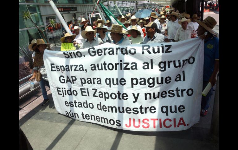GUADALAJARA, JALISCO (29/MAY/2017).- Ejidatarios de El Zapote anunciaron que se viajarán a la Ciudad de México para manifestarse afuera de las instalaciones de la Secretaría de Comunicaciones y Transportes (SCT) para exigir el cumplimiento del acuerdo sostenido con el licenciado Rodrigo Ramírez Reyes, quien funge como oficial mayor de la SCT.Mediante un comunicado, refirieron que durante la visita de Ramírez Reyes a mediados de este mes se dijo que ya estaban muy cerca de responder a las demandas de los ejidatarios. De igual manera agregó que “los avalúos se están acercando a un ajuste muy definitorio y esperamos que esto en un lapso muy corto ya quede resuelto”.Sin embargo, ejidatarios reclaman que la dependencia no ha cumplido con los acuerdos para el pago de las 307 hectáreas que fueron utilizadas para construir el Aeropuerto de Guadalajara. Señalan que ya han sido demasiadas largas, por lo que 250 integrantes del Ejido realizarán el plantón.