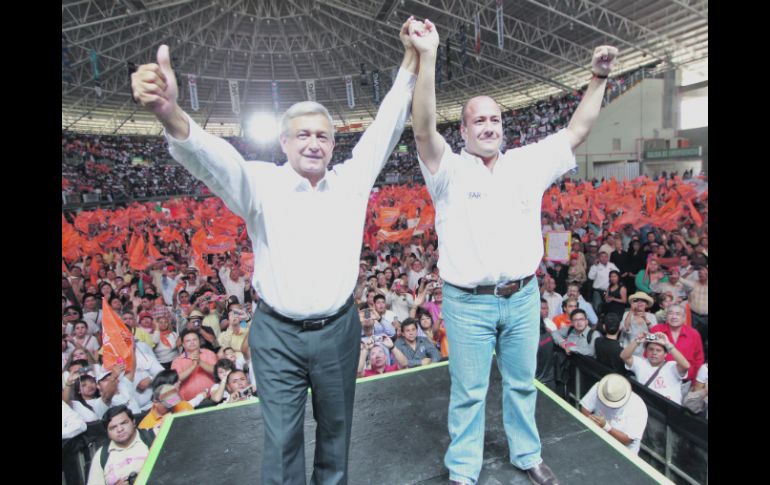 Jalisco | Proselitismo izquierdista en la Arena VFG “El PAN y PRI son culpables de la tragedia nacional” En Jalisco, el candidato Andrés Manuel López Obrador señala al tricolor por “gestar” la crisis y al blanquiazul por empeorarla Por: EL INFORMADOR 1 de abril de 2012 - 03:15 hs UNIDAD.- Andrés Manuel López Obrador acompañó a Enrique Alfaro en su acto masivo. / GUADALAJARA, JALISCO (01/ABR/2012).- Los dos son igual de culpables. Andrés Manuel López Obrador, candidato presidencial de la izquierda, afirmó durante su discurso en la Arena VFG —donde respaldó al candidato a la gubernatura de Jalisco, Enrique Alfaro— que el Partido Revolucionario Institucional (PRI) fue el encargado de gestar la crisis del país desde que estaba en su apogeo en el poder, ya que aplicó una política neoliberal que sólo ayudó a algunos cuantos. Sobre el Partido Acción Nacional (PAN), López Obrador dijo que desde el año 2000 engañó a millones de mexicanos diciendo que habría un cambio, y sin embargo continuaron con la misma política. Sobre esto, recalcó: “Tanto el PAN como el PRI son responsables de la tragedia nacional y por ello hablamos de un cambio verdadero”. “Yo apoyo a Enrique Alfaro” Durante las visitas que ha realizado López Obrador a Jalisco, incluso desde que disputaba la candidatura presidencial con el jefe de Gobierno del Distrito Federal, Marcelo Ebrard, era común ver a Enrique Alfaro acompañándolo; desde ahí, el político tabasqueño reconocía el accionar del entonces alcalde de Tlajomulco, y anunciaba su apoyo para buscar Casa Jalisco. Ayer, López Obrador confirmó: “Yo dije que iba a apoyar al que resulte mejor posicionado en las encuestas. Alfaro ganó tres y por eso estoy aquí: yo apoyo a enrique Alfaro”, dijo ante una concurrencia de 15 mil almas. El abanderado del Movimiento Progresista —conformado por PRD, PT y MC— calificó al ex alcalde de Tlajomulco como un “dirigente de primer orden”, que cuenta con “carácter, corazón y coraje”. Llamó a la unión de ciudadanos, sean estos militantes o no de cualquier fuerza política, en aras de transformar al país mediante un proyecto que no responda a “cúpulas de poder” y se integre por verdaderos mexicanos con convicción de cambio: “Puertas abiertas a todos por un objetivo superior: la transformación de Jalisco y México”. De igual forma, hizo público su apoyo a los miembros de Movimiento Ciudadano por las alcaldías de Guadalajara y Tlajomulco, Salvador Caro Cabrera e Ismael del Toro Castro, respectivamente. Ellos, desde su óptica, son piezas claves para mejorar la vida en la Entidad, “a través de un eje que se llama Enrique Alfaro”. Promete acabar con corrupción López Obrador afirmó que nada ha dañado más a México que la corrupción. El ex jefe de Gobierno del Distrito Federal resaltó que su propuesta no es “quitarle a los ricos para darle a los pobres, sino que se maneje el presupuesto público, que es dinero de todos, con honradez y se distribuya con justicia para mejorar las condiciones de vida”. FRASE''Limpiaremos al Gobierno de corrupción de arriba hacia abajo como se limpian las escaleras, para que se lleve a cabo un cambio verdadero ''Andrés Manuel López Obrador, candidato de izquierda. Alfaro acusa “boicot” priista Para los afectados es símbolo inequívoco de “guerra sucia”. Pese a que poco más de 15 mil personas presenciaron el evento político de Enrique Alfaro y Andrés Manuel López Obrador, que se celebró ayer al mediodía en la Arena VFG, la cifra de ciudadanos no llenó el auditorio, como sí ocurrió en julio del año pasado, cuando el entonces alcalde de Tlajomulco celebró “dos años de cambio en la historia del municipio”. Lo anterior, debido a que 180 camiones para transporte fueron cancelados de última hora, en lo que se considera una prueba palpable de que la “guerra sucia” en el arranque de campañas para los contendientes de izquierda por la gubernatura de Jalisco y Presidencia de la República, respectivamente, “es un hecho”. El candidato de Movimiento Ciudadano por la silla de Casa Jalisco, Enrique Alfaro, atribuyó el “boicot” a “la gente del Partido Revolucionario Institucional (PRI)”. “Y eso que son quienes andan ‘chilloteando’ y quejándose de la ‘guerra sucia’. Son quienes más artimaña y menos vergüenza tienen”. Lamentó el asunto, aunque celebró a su vez que los ciudadanos encontraran otras vías para llegar a la cita. “A las 12 de la noche nos avisaron que se cancelaba un número importante de camiones; 180 o 200, no recuerdo bien, pero nos hablaron para avisar nada más; después de eso, (los personajes con quienes se hizo el trato) simplemente se nos desaparecieron”. Temas PRD AMLO Enrique Alfaro Elecciones Jalisco 2012 Lee También Recuperan camión de carga robado en Tlajomulco Denuncia en su contra es para ocultar un fraude: Hermana de Omar "N" Protección Civil reabre el malecón de Puerto Vallarta Detienen a asesino de joven en partido de futbol Recibe las últimas noticias en tu e-mail Todo lo que necesitas saber para comenzar tu día Registrarse implica aceptar los Términos y Condiciones