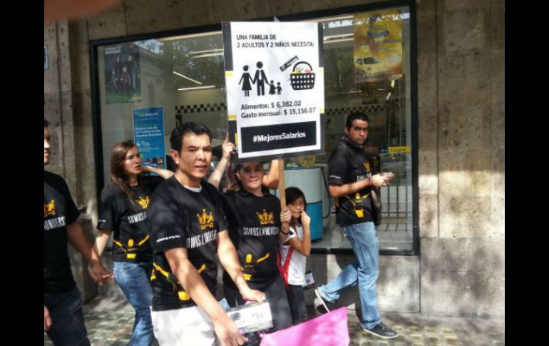 Jalisco | Los trabajadores de la universidad realizaron una manifestación por calles del Centro El SUTUdeG exige a Emilio mayor presupuesto Realizan comparación de la canasta básica con el salario mínimo; entregan recibos de compra y productos a las puertas de Palacio de Gobierno Por: EL INFORMADOR 17 de diciembre de 2012 - 12:50 hs A decir de SVyT, la manifestación no causó estragos al tránsito de automotores en el primer cuadro de la ciudad. ESPECIAL / GUADALAJARA, JALISCO (17/DIC/2012).- Al menos una centena de trabajadores del Sindicato Único de Trabajadores de la Universidad de Guadalajara (SUTUdeG), marcharon de forma pacífica al medio día de este lunes de la Rectoría de la Universidad de Guadalajara hacia el Palacio de Gobierno -sin causar afectaciones en las vialidades-. Esto, en el marco del inicio del movimiento denominado “Cruzada por mejores salarios”, donde líderes sindicales exigieron 10% de incremento a los sueldos de trabajadores administrativos de la UdeG. Al grito de “exigimos igualdad, mismo trabajo mismo sueldo”, la marcha arrancó en punto de las 12:00 horas, de la explanada de Rectoría, avanzando sin complicaciones por las banquetas de Avenida Juárez-Vallarta, para luego de media hora de traslado, instalarse en el kiosco de Plaza de Armas. En el sitio, el secretario general de la SUTUdeG, Francisco Javier Díaz Aguirre, dio un discurso e hizo una comparación del costo de la canasta básica con el salario mínimo, para ejemplificar “afectaciones en las condiciones económicas de las familias”. En el acto público, el portavoz sindical animó a los trabajadores y jubilados ahí presentes: “Exigimos al Gobernador del Estado, Emilio González Márquez, que entregue un mayor presupuesto a la Universidad de Guadalajara”, ya que, según sus datos, indican que los sueldos de un trabajador administrativo de la casa de estudios están 40% por debajo de lo que gana un empleado administrativo estatal. Por otro lado, la Confederación de Trabajadores y Trabajadoras de las Universidades de las Américas (CONTUA), expresó su apoyo a las exigencias del SUTUdeG, en “su justo reclamo de ajuste salarial”, dicho por su presidente, Jorge Arnó, en un comunicado leído frente a Palacio de Gobierno. La intención de la SUTUdeG, con el apoyo de la CONTUA, será la continuidad en estas manifestaciones, no solamente en Guadalajara, sino a escala nacional y Latinoamérica, ya que aseguran, los estándares de bienestar y desarrollo, al menos en trabajadores universitarios, “no son suficientes para alcanzar una mejor calidad de vida”. El villancico a González Márquez Luego de expresar sus puntos, Díaz Aguirre y los trabajadores presentes, entonaron un villancico dedicado al Gobernador del Estado. “Yo tengo familia, trabajo como hormiga. Un salario digno eso es lo que pido...”, se leía en uno de los párrafos, mientras “el Gobernador”, interpretado por una persona que llevaba una máscara con la cara de González Márquez, le contestaba: “No seas pretencioso, si con diez las puedes... Mira la bartola, deje de poner gorra”. Luego de pedir esta sui géneris posada, los trabajadores colocaron a las puertas de Palacio de Gobierno una canasta con 81 productos de la canasta básica, con una copia de la compra hecha en la tienda Soriana Hiper Patria el pasado 15 de diciembre, con un costo de mil 760.20 pesos y financiada por los mismos trabajadores, esto último según la SUTUdeG. El Dato Las familias, sin poder adquisitivo La SUTUdeG asegura que el ingreso diario promedio de un trabajador administrativo es de 140 pesos. Al mes, 80% de los afiliados a la SUTUdeG perciben cuatro mil 300 pesos, equivalente a 2.3 salarios mínimos en promedio. Además, según investigaciones realizadas por la U de G, indican que una familia de 2 adultos y 2 niños necesitan al mes seis mil 382.02 pesos en alimentos, mientras que el ingreso que se requiere es de 15 mil 156.07 pesos. EL INFORMADOR / MARIO CASTILLO Temas Manifestaciones en Jalisco Municipios UdeG Emilio González Lee También DIF Jalisco impulsa campaña de adopciones de niñas, niños y adolescentes SMN advierte: Tormenta Raymond dejará lluvias intensas y fuertes vientos en 4 estados Jalisco reporta una tendencia a la baja en desapariciones Darán capacitación a ingenieros para transparentar la obra pública Recibe las últimas noticias en tu e-mail Todo lo que necesitas saber para comenzar tu día Registrarse implica aceptar los Términos y Condiciones