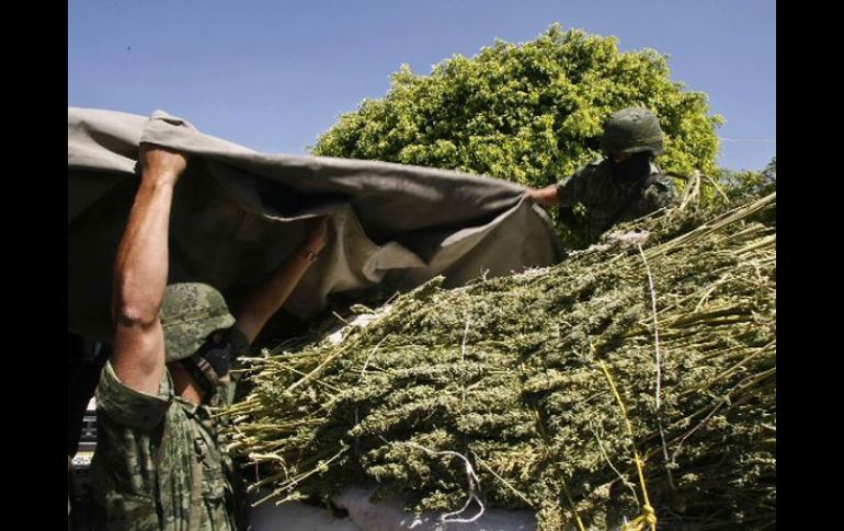Jalisco | Entre 2009 y 2010 creció 359% el aseguramiento de dosis de sustancias ilegales El decomiso de drogas se triplica Entre 2009 y 2010 creció 359% el aseguramiento de dosis de sustancias ilegales, confirma la Secretaría de Seguridad Pública de Jalisco Por: EL INFORMADOR 27 de junio de 2011 - 03:22 hs Las drogas se decomisan a través de recorridos de vigilancia, operativos o dispositivos especiales. E. PACHECO / -Detectan las regiones con mayor incidencia delictiva-Realizan rally ciclista contra las adiccionesGUADALAJARA, JALISCO (27/JUN/2011).- El aseguramiento de dosis de droga en Jalisco creció 359% entre 2009 y 2010, en labores realizadas por la Secretaría de Seguridad Pública del Estado, de acuerdo con el Primer Informe Cuatrimestral del Gobierno. Mientras en 2009 se confiscaron 10 millones 349 mil 347 dosis de droga, para el año siguiente esta cifra se incrementó hasta 47 millones 515 mil 701 porciones. En ese contexto, el titular de la Secretaría de Salud, Alfonso Petersen Farah, apuntó ayer que es algo significativo la incidencia de las mujeres jóvenes que se incorporan al fenómeno delictivo, como consecuencia del tráfico de enervantes. La manera en que la Policía estatal se hace de estos productos es a través de sus recorridos de vigilancia, o con operativos o dispositivos especiales. Tan sólo en el periodo de enero a abril de 2011, la dependencia estatal logró el retiro de 12 millones 830 mil 146 dosis; esto equivale 27% de todo lo incautado en 2010, pero supera ya lo realizado en todo 2009, aunque apenas en cuatro meses. Sin embargo, y a la par de estos incrementos, la dependencia reporta una disminución en la destrucción de plantíos de enervantes, pues mientras en 2009 se destruyeron mil de estos sembradíos, para 2010 la autoridad logró menos, con sólo 727, una cifra similar a la de 2008 (754). Según el Primer Informe Cuatrimestral del Gobierno estatal, en lo que va del año la secretaría ha destruido 265 plantíos de enervantes, asegurado 3.7 toneladas de marihuana y dos laboratorios para la elaboración de droga sintética. Con las sustancias aseguradas, dice, se habrían generando las más de 12 millones de dosis ya comentadas con un valor en el mercado de 354 millones. Es precisamente en esta línea de actuación donde la secretaría fija uno de sus retos para lo que resta del año, con el objetivo de “disminuir la producción y venta de estupefacientes, con la destrucción de plantíos de enervantes, la detención de personas dedicadas al tráfico y compraventa de drogas, el aseguramiento de laboratorios y drogas”. Para saber En lo que va del año se reporta el aseguramiento de más de 12 millones de porciones, con un valor en el mercado de 354 millones de pesos. Temas Seguridad Decomisos de droga en Jalisco Secretaría de Seguridad Pública de Jalisco Recibe las últimas noticias en tu e-mail Todo lo que necesitas saber para comenzar tu día Registrarse implica aceptar los Términos y Condiciones