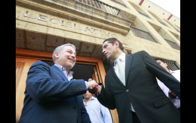 Jalisco | De manera inesperada, el gobernador asiste a sesión de diputados junto con el rector Emilio acude al Congreso para pedir oficialmente crédito para UdeG De manera inesperada, el gobernador se presenta a la sesión de diputados con el fin de garantizar una bolsa de 613 MDP para proyectos universitarios Por: EL INFORMADOR 24 de marzo de 2011 - 10:59 hs Emilio González (izq.) saluda al presidente de la Mesa Directiva del Congreso, Enrique Aubry, a las afueras del recinto. A. GARCÍA / - Emilio solicitará más crédito para destinarlo a la UdeGGUADALAJARA, JALISCO (24/MAR/2011).- El gobernador del Estado, Emilio González Márquez, acudió sorpresivamente al Poder Legislativo, acompañado por el rector de la Universidad de Guadalajara (UdeG), Marco Antonio Cortés Guardado, y el secretario general de Gobierno, Fernando Guzmán Pérez Peláez. El presidente de la Mesa Directiva del Congreso, Enrique Aubry de Castro Palomino, recibió a la comitiva que ingresó por la puerta principal del Poder Legislativo encabezada por el mandatario estatal. En entrevista, González Márquez explicó que la visita es con el fin de presentar formalmente ante diputados su intención de incrementar el monto del crédito que solicitó por cinco mil millones de pesos, semanas atrás; la idea, explicó, es sumar 613 millones de pesos para destinarlo a proyectos universitarios. “Estamos desde el Gobierno iniciando proyectos para estos dos años; la costumbre es que los últimos dos años se baje el trabajo y que a la gente se dedique a hacer campaña y nosotros hemos dicho que no, que vamos a seguir trabajando. Invité al rector para que plantee los proyectos que requerimos ante los legisladores”. Entre los proyectos que pretenden concretar con 613 millones de pesos, adicionales a los 200 millones de pesos –para la Universidad de Guadalajara- que ya se solicitó recientemente en la petición de crédito por cinco mil millones de pesos, se encuentran: un centro universitario en Tonalá, fortalecer la Universidad Virtual, más recursos para equipar las preparatorias existentes, concluir la Biblioteca Pública, invertir en el Centro de Artes Escénicas, construir un estadio de Atletismo donde estaba el Tecnológico, y “cumplir con otros compromisos que adquirí en Puerto Vallarta”. González Márquez explicó que el Poder Ejecutivo presentó una iniciativa por 613 millones de pesos que se suma a la petición que presentó recientemente por cinco mil millones de pesos. Con respecto a las críticas emitidas por el coordinador de los diputados del PAN, José María Martínez, quien refirió que buscaría un acercamiento con el titular del Poder Ejecutivo o de las Secretaría de Finanzas, para equilibrar el crédito y beneficiar a municipios panistas, el mandatario estatal afirmó que “no vemos colores de partido, estamos fortaleciendo los proyectos que se estaban construyendo y que iniciaron con trabajos en pasadas administraciones, sin siglas y colores partidistas”. No obstante aseveró que el Gobierno del Estado tiene la capacidad financiera de llevar a cabo obras de infraestructura productiva y social con urgencia. “Estoy abierto y vengo a expresar a diputados que si consideran que en la iniciativa hay regiones del Estado que se quedaron sin proyectos detonadores, estoy dispuesto a hacer lo mío y que forme parte del gran proyecto de Jalisco”, dijo. El presidente de la Mesa Directiva, Enrique Aubry, afirmó que la visita fue sorpresiva. Este jueves está prevista la sesión plenaria en el Congreso al mediodía; al momento de la llegada del mandatario estatal, las fracciones parlamentarias estaban en sus reuniones previas a la sesión. Minutos antes de las 12:00 horas el gobernador se reunió con los cuatro coordinadores parlamentarios en el Salón de Juntas Previas anexo al recinto legislativo. EL INFORMADOR / ZAIRA RAMÍREZ Temas Congreso local UdeG Emilio González Crédito Lee También Jóvenes universitarios mostrarán su talento en el Encuentro de las Artes Zapopan 2025 Aguinaldo 2025: ¿trabajadores de Gobierno recibirán pago antes del Buen Fin? Ponen en marcha nuevas unidades de transporte público para el CUCBA Sin ratificación Recibe las últimas noticias en tu e-mail Todo lo que necesitas saber para comenzar tu día Registrarse implica aceptar los Términos y Condiciones