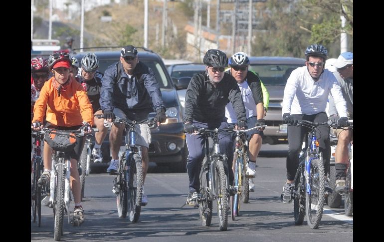 Jalisco | Alcaldes de Tlajomulco y Tlaquepaque acompañan al gobernador de Jalisco Emilio pedalea para supervisar obras del Circuito Sur Junto con alcaldes de Tlajomulco y Tlaquepaque el gobernador hace un recorrido en bicicleta Por: EL INFORMADOR 23 de enero de 2011 - 08:49 hs El gobernador hizo un recorrido en bicicleta por la carretera Santa Cruz de las Flores-Tala. S NUÑEZ / JALISCO (23/ENE/2011).- El gobernador del Estado, Emilio González Márquez, realiza esta mañana un recorrido en bicicleta sobre la carretera Santa Cruz de las Flores –Tala, para supervisar la construcción del Circuito Sur, obra a cargo del Consejo de la Zona Metropolitana de Guadalajara, que consta de una vía de 70 kilómetros a cuatro carriles desde Tala hasta Tlajomulco, en su primera etapa. Acompañan al Gobernador en el recorrido, el Secretario de Desarrollo Urbano de Jalisco, Sergio Carmona Ruvalcaba y los presidentes municipales de Tlajomulco, Enrique Alfaro Ramírez, y de Tlaquepaque, Miguel Castro Reynoso. Temas Gobierno del Estado Emilio González Infraestructura Jalisco Lee También ¿Guadalajara se despide de las lluvias? conoce el pronóstico Jalisco refuerza lucha contra el cáncer de mama La difícil presidencia Mascota, el viaje prometido Recibe las últimas noticias en tu e-mail Todo lo que necesitas saber para comenzar tu día Registrarse implica aceptar los Términos y Condiciones