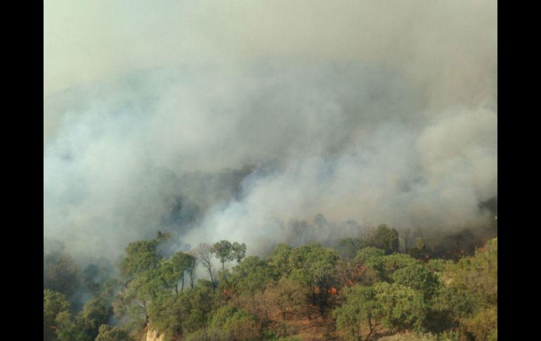 GUADALAJARA, JALISCO (01/MAY/2017).- Un nuevo incendio se presentó en terrenos del bosque La Primavera, el cual abarcó hasta la noche de este lunes una superficie de entre 50 hectáreas y 70 hectáreas, informó Protección Civil y Bomberos de Zapopan.El reporte se recibió a las 16:15 horas, lo que provocó la movilización de elementos de diversas corporaciones de los tres niveles de gobierno hacia el llamado Cerro del 18, en Pinar de la venta, al oriente de El Bajío. La columna de humo podía ser vista desde el Periférico y sobre Vallarta.Sin embargo, el área que afectaba el incendio era principalmente de pastos y hojarasca, sin alcanzar aún arbolado adulto, según las autoridades. Minutos después de la alerta comenzó a llegar el personal y se estableció un puesto de mando para coordinar la estrategia de ataque del fuego.Tras el inicio de los trabajos el viento cambió de dirección por lo que se complicaron las labores de los bomberos ya que se comenzó a desplazar el fuego hacia el bosque.Aún sin controlar hacia las 19:30 horas, alrededor de 104 combatientes trabajaban en el lugar, los cuales se apoyaron con 26 vehículos y tres helicópteros. Para esa hora ya se habían dado atenciones médicas a dos personas por fatiga.Los elementos en el lugar corresponden a la Comisión Nacional Forestal, Protección Civil del Estado, bomberos Zapopan, Guadalajara y la Secretaría de Medio Ambiente estatal, además personal forestal de La Primavera.Bomberos Zapopan advirtieron a la población estar alertas por alguna contingencia ambiental, indicó el titular de la dependencia, Sergio Ramírez López. “Vamos a seguir trabajando en el incendio durante toda la noche”, sin embargo el trabajo con los helicópteros se suspendió para reanudarse a las 7:30 horas de este martes.