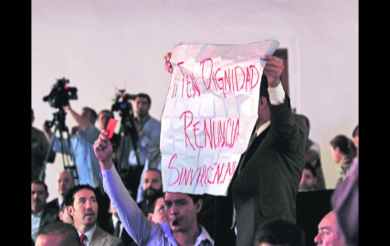 Jalisco | Un grupo de jóvenes manifiesta su desacuerdo con el papel del instituto En medio de protestas, el IEPC rinde informe de actividades Un grupo de jóvenes que dijeron ser estudiantes de la UdeG manifestó su desacuerdo con el papel del instituto Por: EL INFORMADOR 10 de mayo de 2013 - 03:03 hs Rechifla.Los jóvenes manifestantes lograron ingresar al recinto pese a que el evento era de acceso restringido. EL INFORMADOR / GUADALAJARA, JALISCO (10/MAY/2013).- Con chiflidos y silbatos, alrededor de ocho estudiantes de diversas carreras de la Universidad de Guadalajara (UdeG) irrumpieron en el Informe 2010-2013 del Instituto Electoral y de Participación Ciudadana del Estado de Jalisco (IEPC), en el Instituto Cultural Cabañas. Cuando el consejero presidente del IEPC, José Tomás Figueroa Padilla, comenzó con su informe, los jóvenes sacaron pancartas y comenzaron con rechiflas dentro y fuera de la capilla Tolsá, situación que provocó que personal de logística del IEPC les quitara el silbato de la boca y rompiera sus cartulinas. Después, los invitaron a salir del recinto. Uno de ellos, Eduardo Lomelí, señaló: “Estamos en contra de la corrupción, de las irregularidades; no queremos que pase lo que pasó en las elecciones anteriores; los jóvenes, y en su mayoría los ciudadanos, estamos en contra de que haya procesos oscuros, y estamos a favor de que se transparenten las cosas”. Los jóvenes negaron ser enviados por algún actor político o haber sido los responsables de la clausura simbólica con la que amaneció el edificio del IEPC ayer por la mañana. Al momento de la rechifla, el consejero presidente agradeció también la presencia de los jóvenes; sin embargo, su personal los acompañó hasta la entrada del Cabañas. En su informe, Figueroa Padilla dijo que pese a que hubo impugnaciones y diversos señalamientos al IEPC, el Tribunal Electoral concluyó que el proceso electoral se llevó de manera adecuada, y se deja un Estado tranquilo, además de que defiende su actuar y la de sus consejeros. Resaltó como uno de los principales proyectos el de la urna electrónica, que se utilizó en dos distritos y un municipio en las pasadas elecciones de julio. Figueroa Padilla aseguró que todavía no conoce la convocatoria para la elección del nuevo consejo del IEPC, por lo que la revisará antes de tomar la decisión de reelegirse o no. EL DATOAprueban convocatoria Diputados locales aprobaron por unanimidad ayer la convocatoria para renovar el Consejo General del IEPC. El Congreso del Estado deberá elegir a los consejeros a más tardar el 31 de mayo,conforme a lo siguiente: proceder a la elección de un consejero presidente en votación individual y con dos terceras partes de los legisladores; seis consejeros que serán elegidos con dos terceras partes de los legisladores y, en caso de no realizarse la elección en el plazo establecido, habrán de generarse tantas rondas de votación como sean necesarias. Temas Municipios IEPC Estudiantes Lee También Anuncian escuelas de tiempo completo en Jalisco Colonias tapatías con mayor número de infractores por tirar basura ¿Qué día de la semana hará más calor en Guadalajara? Beca Benito Juárez: Calendario OFICIAL de pagos para estudiantes media superior Recibe las últimas noticias en tu e-mail Todo lo que necesitas saber para comenzar tu día Registrarse implica aceptar los Términos y Condiciones