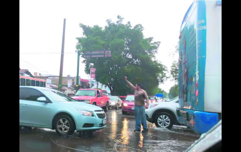 GUADALAJARA, JALISCO (27/AGO/2016).- La desesperación por cruzar la zona por parte de cuatro choferes del transporte público y una camioneta, provocaron un severo atorón en el cruce de las avenidas Alcalde y Fidel Velázquez. La fuerte tormenta registrada ayer por la tarde ocasionó que se apagaran los semáforos y se detonó un caos.Uno, dos, tres… 15 minutos estancados. Conductores desesperados y enfrentados en sus unidades en todos los sentidos hacían sonar el claxon. Otros se concentraban en sus celulares. Unos más veían caer la fuerte lluvia, resignados a la llegada de agentes viales (la sede de la Secretaría de Movilidad está a corta distancia, en Alcalde y Circunvalación). Pero nada. 20 minutos.Las filas se hacían más largas. De pronto un joven arribó corriendo hacia el centro del crucero y orientó a una camioneta para que retrocediera y pudiera pasar un camión. Comenzaron a transitar por Fidel Velázquez hacia Federalismo.El ciudadano, convertido en “agente vial” improvisado, hizo retroceder un auto para despejar el otro sentido de Fidel Velázquez. Fluyó la circulación por esa avenida.Los conductores siguieron las instrucciones del joven en todo momento, quien ordenó el freno de la circulación por Fidel Velázquez y dio paso a los que transitaban por Alcalde. ¿Cómo te llamas? Ni una palabra. Él siguió concentrado dirigiendo la vialidad. Un ejemplo ante la falta de autoridades.Ayer, el Norte de la ciudad se convirtió en un caos a causa de la lluvia vespertina. La Secretaría de Movilidad reportó el cierre de Circunvalación, al cruce con Félix Palavicini por una inundación de 50 centímetros en ambos sentidos, mientras que varios ciudadanos informaron en redes sociales que la Avenida Normalistas sufrió afectaciones en sus cruces con Fidel Velázquez y Maestros, respectivamente.Se reportó lluvia intensa en el Centro tapatío y la Colonia Independencia, así como caída de granizo en La Normal y Jardines del Country. También hubo lluvia de moderada a fuerte en las zonas Tetlán, Oblatos y Olímpica.