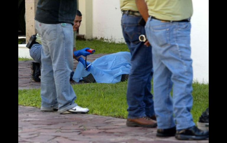 Jalisco | Fue encontrado en el fraccionamiento Puerta Real Encuentran a hombre muerto en Zapopan En el cuerpo se apreciaban marcas de violencia Por: EL INFORMADOR 11 de julio de 2010 - 12:44 hs Los polícias municipales acordonaron la zona. ARCHIVO / ZAPOPAN, JALISCO (11/JUL/2010).- Entre pasto y arbustos fue encontrado un hombre muerto al cual se le apreciaban huellas de violencia en gran parte de su cuerpo, el hallazgo fue en el municipio de Zapopan. Elementos de la dirección de seguridad municipal recibieron un reporte en el que se les manifestaba de una persona tirada e inconsciente en la vía pública. Los oficiales acudieron al cruce de Paseos Valle Real y la avenida Central. Al arribar, encontraron sobre la banqueta a la víctima muerta. El fallecido se encontraba boca abajo y en el cuello se le apreciaba "un surco", además de bastantes golpes en la espalda. Él, de aproximadamente 30 años, vestía una playera blanca, pantalón azul de mezclilla y zapatos cafés. La escena del crimen fue acordonada por policías municipales debido a que encontraron la huella de un neumático el cual se presume era de un vehículo pesado, de donde posiblemente tiraron el cuerpo. Hasta el momento, la víctima se encuentra sin identificar en el Servicio Médico Forense de esta ciudad. INFORMADOR/ OMAR RUVALCABA Temas Seguridad Semefo Zapopan Homicidio Lee También Clima en Zapopan hoy: el pronóstico para el miércoles 22 de octubre de 2025 Hechos violentos en Teocaltiche son respuesta a operativos, afirma Lemus Uno a uno los limoneros asesinados en Michoacán Día de Muertos en Zapopan: Vive una noche de tradición y café en el Bosque El Centinela Recibe las últimas noticias en tu e-mail Todo lo que necesitas saber para comenzar tu día Registrarse implica aceptar los Términos y Condiciones