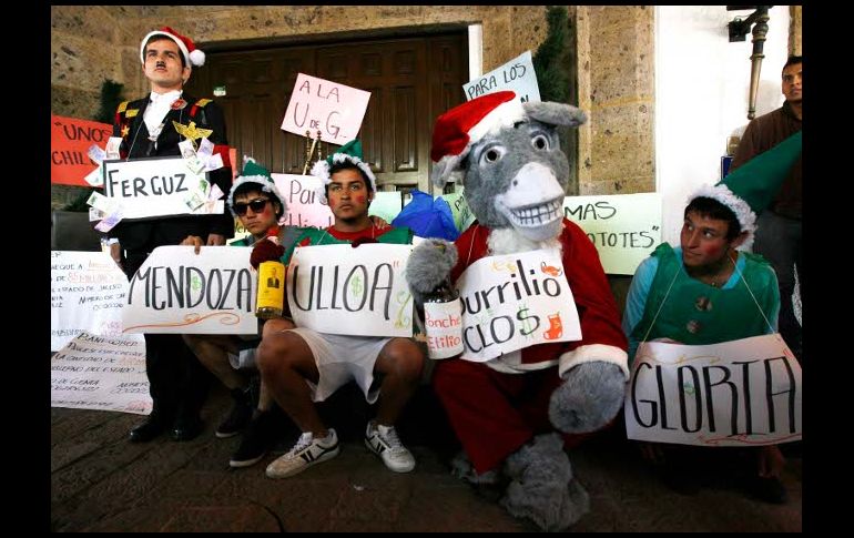 Jalisco | Último recurso del Presupuesto 2010 Entregan último cheque a UdeG El funcionario estatal afirmó que no hay excusa para que los trabajadores de la UdeG no reciban su aguinaldo Por: EL INFORMADOR 15 de diciembre de 2010 - 02:55 hs Estudiantes hicieron una representación en sátira a funcionarios del Gobierno del Estado. E. BARRERA / GUADALAJARA, JALISCO (15/DIC/2010).- El secretario general de Gobierno, Fernando Guzmán Pérez Peláez, anunció que ayer se hizo entrega del último cheque por la cantidad de 245 millones 903 mil 364 pesos para cumplir con la totalidad del presupuesto asignado a la Universidad de Guadalajara (UdeG) para el ejercicio 2010. Con la entrega de los más de seis mil 462 millones de pesos que corresponden al total del recurso de la casa de estudios, el funcionario estatal afirmó que no hay excusa para que los trabajadores de la UdeG no reciban su aguinaldo. “De esta manera se está garantizando y cubriendo el pago que tiene que hacer la Universidad a sus trabajadores y de sus aguinaldos”. En respuesta, el director de Finanzas de la UdeG, Gustavo Cárdenas Cutiño, aseveró que el cheque no resuelve el problema del pago de nómina. Hacen obra navideña Con una representación teatral en la que participaron “Burrilio Clos”, en alusión al gobernador de Jalisco, Emilio González Márquez; “Ferguz”, al secretario general de Gobierno, Fernando Guzmán Pérez Peláez; así como los elfos “Mendoza”, “Ulloa” y “Gloria”, en alusión a los secretarios de Finanzas, Promoción Económica y Educación (Martín Mendoza, Alonso Ulloa y Antonio Gloria Morales, respectivamente); alumnos de la Universidad de Guadalajara (UdeG) emprendieron la mañana de ayer acciones de la “resistencia civil pacífica” para exigir el pago de 701 millones de pesos que el Ejecutivo adeuda a la casa de estudios desde 2007, por varias bolsas de concurso de participación federal. A las afueras de Casa Jalisco y acompañado por alrededor de 350 estudiantes de distintos centros universitarios, “Burrilio Clos” repartió simbólicamente 85 millones de pesos (MDP) a sus amigos, 121 millones de pesos a novelas y espectáculos, 135 MDP en donativos, y 559 millones para publicidad. “Intentamos representar lo que ha venido haciendo el gobernador”, señaló durante la protesta el presidente de la Federación de Estudiantes Universitarios (FEU), Marco Antonio Núñez Becerra. En la puesta en escena, “Burrilio Clos” también repartió chile al ITEI y a los Hospitales Civiles, pepinos al Congreso, camote a la UdeG, una corneta a Guadalajara, unos flotadores a Temacapulín y pastillas de menta al pueblo. Hoy miércoles, las acciones de “resistencia civil pacífica” podrían trasladarse al Congreso del Estado, con motivo de la votación del Presupuesto de Egresos 2011 para Jalisco, adelantó el representante estudiantil. Temas Educación local UdeG Fernando Guzmán Pérez Peláez Presupuesto UdeG Lee También Calendario octubre 2025, ¿qué días no hay clases en el mes según la SEP? Cartucho UdeG reconoce trayectoria de Irene Robledo Beca Rita Cetina: ¿Quiénes reciben el pago en la semana del 13 al 17 de octubre? Recibe las últimas noticias en tu e-mail Todo lo que necesitas saber para comenzar tu día Registrarse implica aceptar los Términos y Condiciones