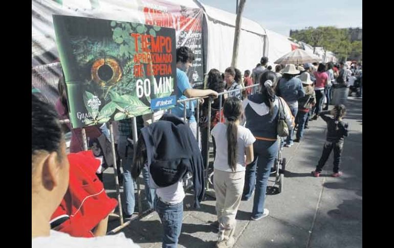 Jalisco | Tapatíos abarrotan exhibición de robots y pista de hielo Esperan hasta seis horas para ver a los dinosaurios La Plaza de la Liberación y la explanada del Cultural Cabañas registran una alta asistencia ante los dos eventos gratuitos Por: EL INFORMADOR 30 de diciembre de 2011 - 01:13 hs Los niños y niñas se desesperan porque la fila no avanza, pero al final salen emocionados de la exhibición de dinosaurios. / GUADALAJARA, JALISCO (30/DIC/2011).- El museo urbano que alberga la exhibición de los “Dinosaurios Animatronics” resulta un éxito en Guadalajara. Miles de personas acuden diariamente desde el 20 de diciembre a la Plaza de la Liberación para disfrutar del espectáculo gratuito de los robots gigantes, en el marco de las festividades por el 470 aniversario de la ciudad. Sin embargo, a poca distancia, en la explanada del Instituto Cultural Cabañas, se encuentra otro atractivo: la pista de hielo también instalada sin costo para la población. Los dos eventos registran llenos desde su apertura. En el caso de los “Dinosaurios Animatronics”, miles de niños y papás deben esperar entre tres y seis horas (en los lapsos de mayor concentración) para disfrutar del espectáculo traído por la empresa Discovery Channel. Los recorridos dentro de la gigantesca carpa inician a las 09:00 horas y culminan a las 21:00 horas. Esta exhibición se mantendrá hasta el 2 de febrero y se esperan alrededor de 250 mil visitas. El recorrido para observar a los dinosaurios dura alrededor de 15 minutos, en los que guías se dividen cada ejemplar y explican a un grupo de 50 visitantes sus principales características, su modo de vida y alimentación. El museo urbano tuvo una inversión cercana a los cinco millones de pesos (70% aportados por patrocinadores). Sobre la pista de hielo, se abrió al público desde el pasado 18 de diciembre frente al Cultural Cabañas. A ésta acuden más de dos mil personas diariamente, desde las 11:00 horas, y la espera se prolonga entre una hora y media y dos horas. En la primera edición de la pista, el Ayuntamiento reportó que más de 100 mil personas disfrutaron su instalación. En los alrededores de ambos espectáculos, los comercios se observan con una mayor actividad. PARA SABERTiranosaurio Rex La exhibición de dinosaurios consta de 14 robots gigantes, entre ellos el Tiranosaurio Rex, con una medida de seis por 13 metros. El museo también imparte talleres de paleontología dirigidos a niños y padres de familia, proyecciones en tercera dimensión y una serie de actividades lúdicas, científicas y pedagógicas. TestimoniosUna larga espera… “Queremos ver a los dinosaurios, les causa mucha ilusión a los niños y por ellos estamos aquí, pero es muy cansado. Tenemos seis horas haciendo fila”. Martina Ramírez Díaz. “Fueron los niños los que nos motivaron a venir, hacer algo en familia, y me pesa que estén todo el rato parados. Cuatro horas y media en la fila y todavía no entramos”. María de los Ángeles López. “Es una fila larguísima, jamás pensé que nos fuéramos a tardar tanto tiempo. De haber sabido que era así, no veníamos”. María Pérez López. “Llevo cuatro horas. Creo que ni los organizadores pensaron que estaríamos tanto tiempo, es demasiada la gente que está viniendo, supongo que son de otros municipios”. Jaime García. “Ya llevamos tres horas 15 minutos haciendo fila. Vengo con mi esposa y mis hijos porque quiero que los niños conozcan a los dinosaurios y tengan interacción con ellos”. César Octavio Cruz Murillo. Temas Museos Municipios Plaza Liberación Recibe las últimas noticias en tu e-mail Todo lo que necesitas saber para comenzar tu día Registrarse implica aceptar los Términos y Condiciones