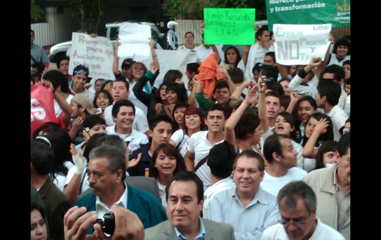 Jalisco | La movilización se podría realizar después del 20 de septiembre Esperan que 'megamarcha' UdeG mueva al gobernador Pretenden que participen de 50 a 60 mil personas de los 100 municipios del Estado en los que tiene presencia la Universidad Por: EL INFORMADOR 9 de septiembre de 2010 - 10:43 hs Consideran que mediante marcha de al menos 50 mil estudiantes, el gobernador acceda a otorgar recursos a la UdeG. R. ZAPATA / ESCUCHE AQUÍ LA NOTAGUADALAJARA, JALISCO (09/SEP/2010).- Debido a que la Universidad de Guadalajara tiene presencia en 100 de los 125 municipios del Estado, la casa de estudios podría tardar de siete a 10 días en organizar una “megamarcha” en la que participen de 50 a 60 mil personas, presume el secretario general del Sindicato de Trabajadores de Académicos (STAUdeG), Roberto López González. Durante la manifestación de estudiantes de la Preparatoria 6 sucedida esta mañana en Casa Jalisco, el líder de los académicos dijo que si dos mil 500 o tres mil estudiantes no mueven al gobernador a otorgar más recursos, quizá una manifestación de tales dimensiones podría hacer cambiar de actitud al titular del Ejecutivo, Emilio González Márquez. Vio con buenos ojos reactivar la mesa de negociación de principios de año como lo sugirió ayer el secretario de Educación Jalisco, Antonio Gloria Morales, e indicó que el mandatario estatal debería llamar al rector general de la UdeG, Marco Antonio Cortés Guardado, para entablar diálogo en torno a las exigencias de los universitarios. López González aseveró que la "megamarcha" se podría realizar después del 20 de septiembre, tras los festejos del Bicentenario de la Independencia. También en Casa Jalisco, el líder de la Federación de Estudiantes Universitarios ( FEU), César Barba Delgadillo, comentó que la coordinadora del PAN en la Cámara de Diputados, Josefina Vázquez Mota, vino a apoyar a Emilio en su negativa de aportar los 390 millones de pesos que demanda la Universidad. Dijo también que a pesar de haber ocupado la titularidad de Secretaría de Educación Pública (SEP), la legisladora desconoce las necesidades de la Educación Superior y específicamente las de la Universidad de Guadalajara. EL INFORMADOR/ RAFAEL ZAPATA Temas Manifestaciones en Jalisco Educación local UdeG Emilio González Lee También Así se vive la Romería 2025 este domingo 12 de octubre (FOTOS) "La Virgen me salvó del cáncer de mama", agradecen la vida, salud y bienestar en la Romería 2025 Lluvias inundan Puerto Vallarta; se reportan más de 300 viviendas afectadas Paquetazo 3×1: Confirman MULTA para quienes no hagan cambio de placas a tiempo Recibe las últimas noticias en tu e-mail Todo lo que necesitas saber para comenzar tu día Registrarse implica aceptar los Términos y Condiciones