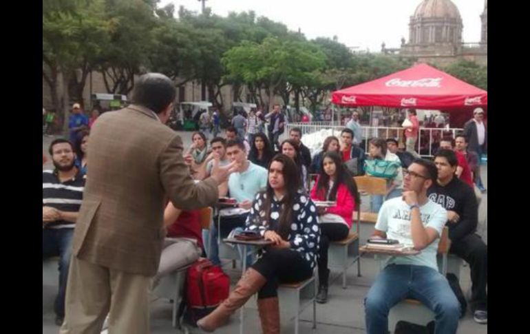 Jalisco | Alumnos y profesores tendrán clases en espacios públicos para mostrar el descontento Estudiantes de la UdeG toman clases bajo protesta Alumnos y profesores tendrán clases en espacios públicos para mostrar el descontento por la violencia que prevalece en el país Por: EL INFORMADOR 24 de noviembre de 2014 - 17:47 hs Estudiantes aseguran que toman estas medidas para probar que no se ha olvidado la injusticia en México. TWITTER / @FEU_UdeG GUADALAJARA, JALISCO (23/NOV/2014).- Alumnos de distintos centros universitarios de la Universidad de Guadalajara (UdeG) cambiaron las aulas por espacios públicos para visibilizar que toman clases bajo protesta, esto por la situación de violencia e injusticia que impera en el país y que ha afectado a jóvenes estudiantes, como a los 43 desaparecidos de la Escuela Normal de Ayotzinapa. Estudiantes del Centro Universitario de Ciencias Sociales y Humanidades (CUCSH) se fueron a Plaza de la Liberación, del Centro Universitario de Ciencias Exactas e Ingenierías (CUCEI) se trasladaron a Plaza de la Bandera, mientras que los educandos del Centro Universitario de Ciencias Biológicas y Agropecuarias (CUCBA) se ubicaron en un espacio de la carretera a Tala. "La idea es tomar clases en todos los parques públicos que están alrededor de las escuelas para mostrar a la sociedad que seguimos en nuestra función sustancial, que es prepararnos para construir un mejor futuro para este país, pero que lo hacemos protestando porque no se nos ha olvidado la injusticia y la sinrazón de los gobiernos", dijo el presidente de la Federación de Estudiantes Universitarios (FEU), Alberto Galarza Villaseñor. El líder estudiantil afirmó que estas acciones forman parte de lo acordado el pasado 20 de noviembre en la Asamblea General de la FEU. "Creemos que toda movilización debe acabar en temas de propuestas de fondo para reestructurar este país. Nosotros estuvimos trabajando y haciendo consensos para poder articular esta estrategia". Debido a que la FEU ha participado recientemente en la organización de protestas estudiantiles en horarios de clases, lo que genera molestia en algunos miembros de la comunidad universitaria, agregó: "Sabemos también que estar suspendiendo clases es un mal mensaje para algunos. Nosotros buscamos transformar este país a través del conocimiento". Los representantes estudiantiles de cada división son los encargados de entablar diálogo con los profesores para consensar las acciones de protesta y llevar sus clases a los espacios públicos. El próximo lunes 1 de diciembre se llevará a cabo la siguiente asamblea de la FEU a las 17:00 horas en la explanada del Edificio Administrativo de la UdeG. EL INFORMADOR / BRENDA RAMOS Temas Educación UdeG FEU Recibe las últimas noticias en tu e-mail Todo lo que necesitas saber para comenzar tu día Registrarse implica aceptar los Términos y Condiciones