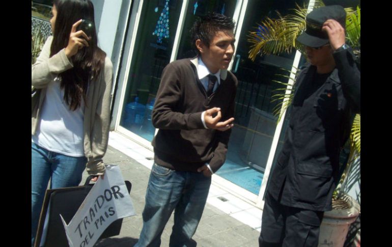 Jalisco | Un par de universitarios aguardaban a Peña Nieto para expresar su inconformidad Estudiantes intentan manifestarse por visita presidencial Un par de universitarios aguardaban al Presidente Peña Nieto para expresar su inconformidad contra lo que para ellos representa el PRI Por: EL INFORMADOR 7 de marzo de 2013 - 15:22 hs En la pancarta que llevaban los jóvenes sólo se leía “Traidor del país”. / GUADALAJARA, JALISCO (07/MAR/2013).- Un solo pedazo de cartulina de 30 por cincuenta centímetros provocó que elementos del Estado Mayor Presidencial enfocaran su atención en los portadores: un par de estudiantes universitarios que intentaron manifestarse desde afuera de la zona que se delimitó para albergar a Enrique Peña Nieto, en su visita a la ciudad, en la explanada del Centro Cultural Cabañas. Los estudiantes --un hombre y una mujer-- se instalaron en la acera norte de la Avenida Hidalgo, el único paso peatonal en la zona. Detrás de las vallas, aguardaban a que Peña Nieto regresara al vehículo que lo esperaba estacionado a la orilla de la explanada. Sus ideas eran precisas: su inconformidad era en contra de lo que representa el PRI, dijo el joven: años de autoritarismo y un regreso que no renovó al partido; la reforma educativa, la privatización de Pemex, el subsidio a la energía eléctrica, el IVA a medicinas y alimentos y más. El Presidente era un concentrado de sus fobias. La pancarta sólo rezaba: "Traidor del país". Los divisaron entonces los elementos de seguridad del Ejecutivo y los rodearon: cerca de diez ocultaron a los dos estudiantes y su pequeña pancarta. A los diez que los ocultaban se sumaron otros tantos para retirar de la vía pública a los dos manifestantes y a los medios de comunicación de paso, a quienes encaminaron hasta la calzada Independencia, ya muy lejos de la presencia de Peña Nieto. Así, éste abordó su vehículo bajo la mirada de espectadores que no tenían nada más que elogios para su labor como Presidente. Temas Manifestaciones en Jalisco Enrique Peña Nieto Municipios Estudiantes Lee También Así se ve la carretera Guadalajara-Morelia en cámaras del C5 tras bloqueo SAT: ¿Cómo saber si hay servicio tras el paro de trabajadores? ¿Quién es el líder del cártel del "Mencho" que cayó en Guadalajara? Interviene el Gobierno del Estado en protesta de maiceros para liberar carreteras Recibe las últimas noticias en tu e-mail Todo lo que necesitas saber para comenzar tu día Registrarse implica aceptar los Términos y Condiciones