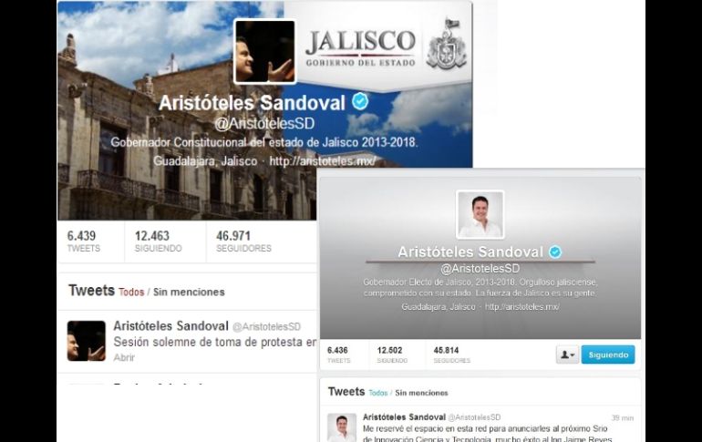 Jalisco | Al inicio de su administración, el gobernador de Jalisco tiene 46 mil 971 seguidores Evoluciona la cuenta de Twitter de Aristóteles Al inicio de su administración, el gobernador de Jalisco tiene 46 mil 971 seguidores en Twitter y 243 mil 937 Me gusta en Facebook Por: EL INFORMADOR 1 de marzo de 2013 - 17:48 hs La cuenta de Twitter @AristotelesSD está verificada por los administradores de la red social. ESPECIAL / GUADALAJARA, JALISCO (01/MAR/2013).- Aunque la denominación de la cuenta de Aristóteles Sandoval sigue siendo la misma (@AristotelesSD) en el transcurso de este día, al tomar posesión como nuevo gobernador de Jalisco, su perfil experimentó algunos cambios. Lo más notable fue la descripción del usuario (Bio) donde hasta la noche del 28 de febrero Sandoval Díaz se describía como "Gobernador Electo de Jalisco, 2013-2018. Orgulloso jalisciense, comprometido con su estado. La fuerza de Jalisco es su gente" y al tomar protesta optó por algo mucho más escueto: "Gobernador Constitucional del estado de Jalisco 2013-2018". También modificaron algunos elementos gráficos como la imagen de la cuenta que ahora tiene un fondo oscuro y muestra al político de perfil mirando a la derecha y con vestimenta formal, a diferencia de la anterior donde aparecía vestido informal de color blanco. Además también cambió el fondo de la página para colocar el Escudo de Armas de Jalisco y la leyenda "Gobierno del Estado" y activaron la fotografía de encabezado donde ahora aparece el Palacio de Gobierno. La cuenta de Twitter @AristotelesSD está verificada por los administradores de Twitter y a las 17:00 horas del 1 de marzo de 2013 tiene 46 mil 971 seguidores, de los que poco más de mil 100 se han sumado en las últimas 24 horas. Cabe destacar que también, en las últimas horas, se ha reducido el número de personas a las que sigue esta cuenta del gobernador de 12 mil 502 la tarde del jueves, a 12 mil 463 poco después de las 17:00 horas del viernes. El gobernador entrante también tiene presencia en Facebook donde la tarde del viernes cuenta con 243 mil 937 "Me gusta". En esa página también se cambió la imagen del perfil, con una imagen donde Sandoval aparece mostrando el Bando Solemne que le entregó el Congreso de Jalisco esta mañana y en el "cover photo" aparece el emblema del gobierno estatal. Sigue al nuevo gobernador en redes sociales Twitter: https://twitter.com/AristotelesSD Facebook: https://www.facebook.com/jaristoteles.sandoval?fref=ts EL INFORMADOR / SERGIO RODRÍGUEZ Temas Gobierno del Estado Twitter Aristóteles Sandoval EL TEMA INFORMADOR Recibe las últimas noticias en tu e-mail Todo lo que necesitas saber para comenzar tu día Registrarse implica aceptar los Términos y Condiciones