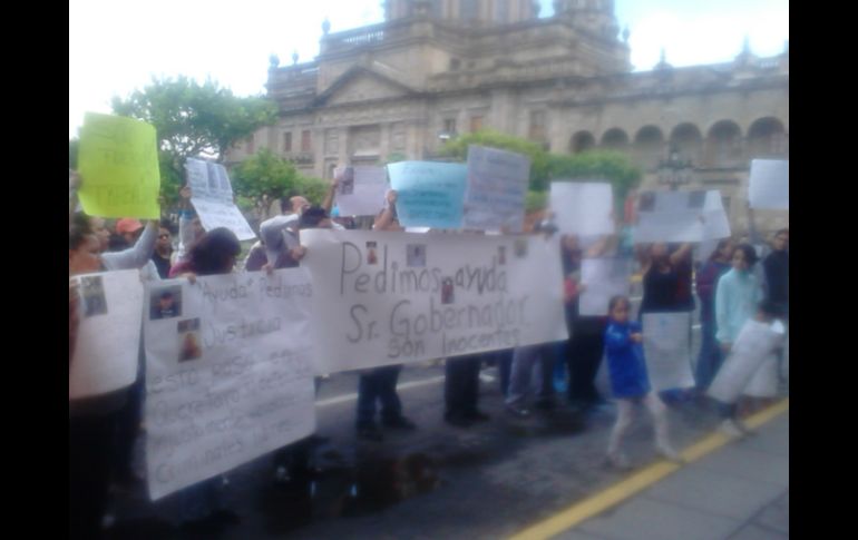 Jalisco | Un contingente de 50 personas protesta frente a Palacio de Gobierno Exigen liberación de empleados de seguridad Un contingente de 50 personas protesta frente a Palacio de Gobierno para pedir la liberación de 31 empleados de seguridad que supuestamente fueron detenidos sin pruebas Por: EL INFORMADOR 3 de septiembre de 2013 - 09:29 hs Llegaron desde temprana hora a las afueras del inmueble ubicado en la calle Ramón Corona. / GUADALAJARA, JALISCO (03/SEP/2013).- Esta mañana alrededor de 50 personas se manifiestan a las afueras de Palacio de Gobierno para pedir que liberen a 31 empleados de seguridad que fueron detenidos desde el pasado 11 de junio cuando se dirigían a Querétaro. El contingente, integrado por familiares y amigos de los arrestados, pide hablar con la persona encargada de asuntos internos, pues asegura que los hombres iban a un evento y fueron detenidos sin pruebas de haber cometido algún delito, sólo porque parecían ''sospechosos''. Los manifestantes llegaron desde temprano al inmueble ubicado sobre la calle Ramón Corona - que está está cerrada al paso vehicular por la ceremonia del Ejército mexicano- y hace unos momentos dejaron entrar a cinco de ellos para que expusieran el asunto a las autoridades correspondientes. Con información de Carolina Quintanilla. Temas Manifestaciones en Jalisco Municipios Detenidos en Jalisco Palacio de Gobierno Lee También Presumen reducción de delitos en Jalisco; al alza robo de motocicletas Aseguran armamento y vehículo con blindaje artesanal en Quitupán Viene por la tarde la tormenta a Guadalajara Diputados responden a Lemus sobre diálogo por la Reforma Judicial Recibe las últimas noticias en tu e-mail Todo lo que necesitas saber para comenzar tu día Registrarse implica aceptar los Términos y Condiciones