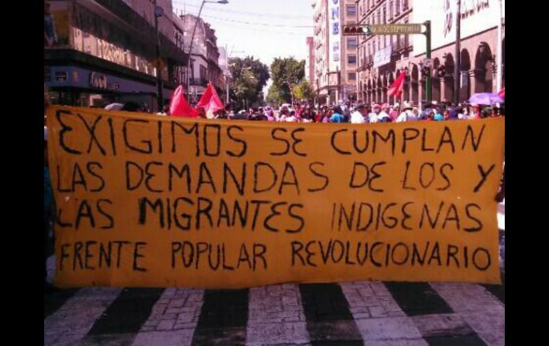 Jalisco | Protestan cerca de 230 personas en el cruce de Juárez y 16 de septiembre Exigen migrantes indígenas predio para vivir Un grupo de 230 personas tomaron el cruce de Juárez y 16 de septiembre Por: EL INFORMADOR 17 de febrero de 2014 - 14:14 hs La protesta promete disolverse cuando haya una respuesta. / GUADALAJARA, JALISCO (17/FEB/2014).- Otomís, mixtecos, zapotecos, nahuas y purépechas. Un grupo de 230 personas de grupos indígenas tomaron el cruce de Juárez y 16 de septiembre a manera de protesta, lo que provocó cierre de las calles. Las comunidades se manifestaron porque desde el 5 de marzo del año pasado hicieron dos peticiones al Gobierno del Estado y hasta la fecha no han tenido respuesta. La primera se trata de un predio en Tlajomulco para que vivan familias indígenas y se beneficien 300 personas, explicó Martín Guzmán, vocero del Frente Popular Revolucionario. "Que se nos entregue el predio decretado el 5 de diciembre por el gobernador, Emilio González Márquez, un predio que fue decretado en beneficio de los migrantes indígenas para la dotación de vivienda". Del predio, tomó posesión la comunidad, aunque de forma pacífica. Lo que quieren es que se les entregue formalmente y apegado a la legalidad. La segunda solicitud son dos mercados de artesanías, de lo que hubo recepción, mas no seguimiento, explica el vocero. "El Gobierno del Estado no le quiere entrar a ese tema. Dicen que no hay recursos y a nosotros nos da risa, porque sí hay recursos, pero no los quieren soltar para la clase desprotegida". La protesta promete disolverse cuando haya una respuesta, por lo pronto, una comisión de siete personas fue recibida en Palacio de Gobierno. EL INFORMADOR / ALEJANDRA PEDROZA Temas Manifestaciones en Jalisco Indígenas Municipios Calles y vialidades de Guadalajara Lee También Clima en Guadalajara hoy: el pronóstico para el lunes 13 de octubre de 2025 Hallan en la Central Camionera de Tlaquepaque a menor desaparecido en Guanajuato Esto costará el Gas LP en Jalisco en la semana del 13 al 18 de octubre Celebran la participación de 3 millones de personas en la Romería 2025 Recibe las últimas noticias en tu e-mail Todo lo que necesitas saber para comenzar tu día Registrarse implica aceptar los Términos y Condiciones