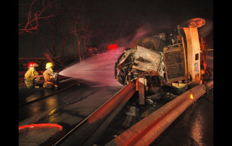 Jalisco | Se reportan también tres heridos tras el estallido de una pipa de gas en Zapopan Explosión en El Palomar deja dos muertos Elemenos de Protección Civil y Bomberos trabajan para extinguir las llamas Por: EL INFORMADOR 23 de diciembre de 2010 - 19:50 hs Bomberos trabajan en la extinción del fuego. S. NÚÑEZ / ZAPOPAN, JALISCO (23/DIC/2010).- El choque de una pipa de gas contra dos vehículos dejó saldo de dos muertos y tres personas más lesionadas, además de provocar el incendio de un área considerable de terreno boscoso. El percance ocurrió sobre la Avenida Paseo El Palomar, en el fraccionamiento del mismo nombre en el municipio de Zapopan, donde la pipa de gas presuntamente se quedó sin frenos al bajar por la rúa con dirección hacia la salida del mismo conjunto habitacional, por lo que chocó con un camión de volteo para luego impactarse contra una camioneta tipo estaquitas. El camión de carga tipo volteo, en color blanco, con placas de circulación 978–CV–2, era conducido por Juan Carlos Ruvalcaba, de 45 años de edad, quien fue trasladado a la Cruz Verde Las Águilas con quemaduras de segundo y tercer grado. En tanto que los tripulantes de la estaquitas, en color blanco, con matrícula de circulación JL–30001, son Carlos Martín Ávalos Ramírez, de 26 años, y Julio Méndez Martínez, quienes fueron rebasados e impactados por la pipa, con placas JD–50773, con capacidad de dos mil 500 litros, ocasionando que ambos vehículos se volcaran. Sin embargo, los dos pasajeros resultaron ilesos. Tras el impacto sobrevino la explosión, misma que cobró la vida de los tripulantes de la misma pipa. Se trata de quienes llevaban en vida los nombres de Jesús Leobardo Hernández Rocha, de 29 años de edad, y el conductor, Luis Fabricio Velázquez Zamarripa, de 35 años. Posterior al accidente, un área boscosa de aproximadamente 80 por 50 metros se incendió, pero afortunadamente el fuego fue sofocada por elementos de Protección Civil y Bomberos del Estado y Zapopan. El paso, en ambos sentidos, para vecinos del fraccionamiento quedó interrumpido por más de cuatro horas, debido a la realización de las maniobras para extinguir el fuego, rescatar a las víctimas y levantamiento de los vehículos participantes en el accidente. EL INFORMADOR / MARÍN PATIÑO Temas Seguridad Zapopan Explosiones Protección Civil Zapopan Lee También Clima en Zapopan hoy: el pronóstico para el sábado 11 de octubre de 2025 Omar 'N' es vinculado a proceso por presunto abuso sexual infantil agravado Romería 2025: Estas son las alternativas viales ante cierres Ángel Covarrubias, la voz infantil que conquistó Zapopan Recibe las últimas noticias en tu e-mail Todo lo que necesitas saber para comenzar tu día Registrarse implica aceptar los Términos y Condiciones