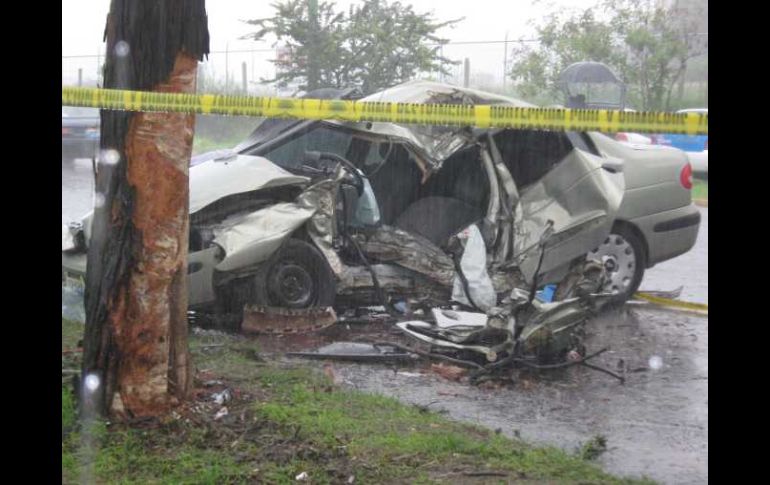 Jalisco | Combinó velocidad y lluvia Fallece conductor por choque en Periférico Sur La víctima quedó prensada en el interior de su vehículo, causándole la muerte instantáneamente Por: EL INFORMADOR 9 de julio de 2010 - 05:20 hs El auto quedó destruido por el golpe contra el árbol. O. RUVALCABA / ZAPOPAN, JALISCO (09/JULIO/2010).- La combinación de alta velocidad, piso mojado y lluvia fueron las causas para que un hombre estrellara su vehículo contra de un árbol y perdiera la vida, en el Municipio de Zapopan. Alrededor de las 6:30 horas de ayer, ocurrió el accidente sobre Periférico Sur casi al cruce con la avenida Guadalupe. El hombre viajaba en un Renault Megane, en color gris, con placas JCV-3983, y que de acuerdo con agentes de la Secretaría de Vialidad y Transportes ( SVyT) el hombre identificado de manera extraoficial como Jonathan Roberto Fregoso Guevara, de 25 años, perdió el control de su auto, cuando quiso tomar una salida de Periférico que conduce a la avenida mencionada. En ese momento, rebasó a una camioneta Nissan, con matricula JP-15418, con razón social Yakult, que era conducida por Miguel Rodríguez Aguilar, de 25 años, a la cual le pegó; salió ileso el chofer repartidor. La víctima al pasar a la camioneta se estrelló contra un árbol y quedó prensado dentro de su automotor, por lo que paramédicos y bomberos zapopan que lo atendieron utilizaron “las quijadas de la vida” para liberar al hombre, pero él falleció de manera instantánea. El cuerpo del chofer fue llevado a la morgue metropolitana en espera que sea reconocido de manera oficial por algún familiar. Temas Seguridad Accidentes con muertes en Jalisco SVyT Lee También Helicóptero se desploma en Huntington Beach, California; reportan cinco heridos Tres personas resultan lesionadas tras explosión de camión en carretera México-Puebla Recuperan camión de carga robado en Tlajomulco Denuncia en su contra es para ocultar un fraude: Hermana de Omar "N" Recibe las últimas noticias en tu e-mail Todo lo que necesitas saber para comenzar tu día Registrarse implica aceptar los Términos y Condiciones