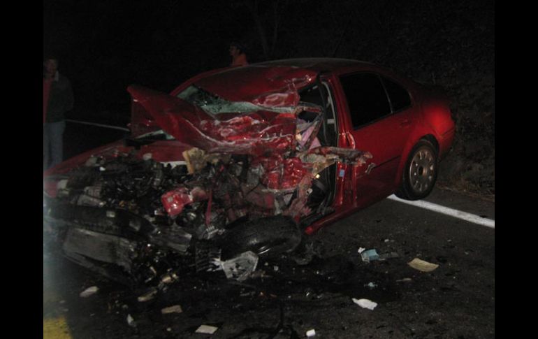 Jalisco | Presuntamente el sujeto que perdió la vida iba a exceso de velocidad Fallece hombre en choque Presuntamente el sujeto que perdió la vida iba a exceso de velocidad Por: EL INFORMADOR 7 de diciembre de 2010 - 02:15 hs El choque frontal se registró alrededor de la 1:30 horas. O. RUVALCABA / ZAPOPAN JALISCO (07/DIC/2010).- Un choque entre un camión de carga y un vehículo compacto, provocó la muerte de un hombre de aproximadamente 35 años sobre la carretera que conduce de Guadalajara a Saltillo, dentro del municipio de Zapopan. El choque frontal se registró alrededor de la 1:30 horas en mencionada vía a la altura del kilómetro 24. En ese punto un camión international con placas 003FC1 fue impactado por un vehículo Jetta de color rojo de matrícula JFV9256 y el chofer de éste ultimo murió prensado dentro de su automóvil. De acuerdo a lo informado por elementos de la Policía Federal, lo observado en la escena indica que presuntamente el vehículo Jetta viajaba a exceso de velocidad y perdió el control en una curva provocándose el accidente. Por su parte el chofer de camión de carga, escapó de la escena para evitar ser retenido. Hasta el momento el conductor fallecido no ha sido identificado. Al lugar también acudieron bomberos de Zapopan, quienes utilizaron el equipo hidráulico para poder liberar a la víctima y ser entregado a camilleros del Servicio Médico Forense. Por el percance carretero las vía quedó cerrada por al menos tres horas mientras que las autoridades municipales y estatales realizaban las maniobras de rescate y limpieza. EL INFORMADOR/ OMAR RUVALCABA Temas Seguridad Accidentes con muertes en Jalisco Semefo Recibe las últimas noticias en tu e-mail Todo lo que necesitas saber para comenzar tu día Registrarse implica aceptar los Términos y Condiciones