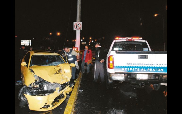 Jalisco | Colisión en el cruce con Prolongación Alcalde Fallece tras salir disparado en un choque en Periférico El impacto entre dos vehículos ocasiona lesiones de gravedad a tres personas; uno de los conductores no respetó el semáforo Por: EL INFORMADOR 18 de agosto de 2011 - 05:20 hs Aspecto de los automotores en el cruce de Prolongación Alcalde y Periférico. O. RUVALCABA / ZAPOPAN, JALISCO (18/AGO/2011).- El choque de frente entre dos automotores dejó como saldo la muerte de una persona y tres más heridas de gravedad, bajo una tormenta registrada entre la noche del martes y la madruga del miércoles, en el municipio de Zapopan. El percance vehicular se registró alrededor de las 0:15 horas de ayer, en el cruce de Prolongación Alcalde y la vía con el mayor registro de accidentes en la ciudad, el Periférico “Manuel Gómez Morín”. De acuerdo con testigos del accidente, una camioneta Chevrolet pick up color azul, con placas JL-49491, circulaba por Prolongación Alcalde en el sentido Norte a Sur y del sentido contrario un Seat Ibiza amarillo con la matricula, JHF-5785, quien era conducido por Alberto Fernando Ramírez Peña, de 19 años. Cuando ambos vehículos trataron de avanzar por los sentidos mencionados uno de ellos presuntamente no respeto la luz roja del semáforo, lo que provocó el accidente. Por el golpe, ambos vehículos giraron en su propio eje al menos dos vueltas, y por dicho motivo un pasajero que iba en la parte posterior de la pick up saló proyectado y terminó estrellado en un poste quedando muerto debido a que sufrió contusión difusa de cráneo y fractura de columna cervical de tercer grado. El fiando fue identificado sólo como Fidel, alias “El Cacho”, de aproximadamente 50 años de edad. Vía letalTelón de fondo Durante 2010, los accidentes viales cobraron la vida de 773 personas en la Zona Metropolitana de Guadalajara (ZMG), dos al día en promedio. El Periférico se mantuvo en esa anualidad como la arteria más peligrosa, al registrar el mayor número de percances: de los 45 mil 540 siniestros ocurridos en la ciudad, prácticamente 15% tuvo lugar en esa vía. El Periférico también es la ruta más letal, de acuerdo con la Secretaría de Vialidad y Transporte (SVyT). De un listado de 211 personas que fallecieron en el lugar del accidente en la metrópoli, 42 perecieron en dicha vía, superando por mucho la incidencia de cualquier otra arteria. Le siguen la Carretera a Tesistán y Calzada Lázaro Cárdenas, con nueve decesos cada una. Temas Seguridad Accidentes Periférico Lee También Desapariciones: empatía abollada Hallan en la Central Camionera de Tlaquepaque a menor desaparecido en Guanajuato Elementos de seguridad detienen a traficante sueco en Cancún Conmociones cerebrales, la cuarta lesión más frecuente en partidos de la Conmebol Recibe las últimas noticias en tu e-mail Todo lo que necesitas saber para comenzar tu día Registrarse implica aceptar los Términos y Condiciones