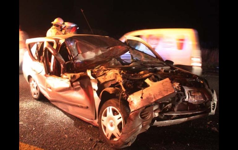 Jalisco | Dos automóviles se impactan de frente en la Región Alto norte Fallecen cuatro personas en accidente carretero Uno de los conductores involucrados en el accidente se dio a la fuga dejando abandonados a sus acompañantes Por: EL INFORMADOR 20 de noviembre de 2012 - 22:47 hs Los ocupantes del automóvil según declaró el conductor se dirigían al Estado de Guanajuato. ESPECIAL / LAGOS DE MORENO, JALISCO (20/NOV/2012).- Cuatro personas fallecieron en la Región Alto Norte, tras un choque frontal donde se vieron involucrados dos automotores; uno de los conductores escapó. El accidente se registró la noche del lunes en la carretera que conduce de San Juan de Los Lagos a Lagos de Moreno, a la altura del kilómetro 135, cerca de la entrada a la Hacienda Las Cajas. Los protagonistas del accidente, fueron un Nissan Platina de color arena, el cual era conducido por Miguel Ángel Robles González, de 60 años, quien resultó gravemente herido y quien pudo decir que se dirigía al estado de Guanajuato. Además, iba acompañado de su mamá Carmen González Palomera, de 85 años, quien falleció por el impacto, y resultó herido Antonio Robles González, de 66 años, quien viajaba en el asiento trasero del automotor. El otro vehículo involucrado, fue una camioneta Ford Escape roja, la cual era maniobrada por Alberto Mazzocco Martínez de 20 años, vecino del estado de Guanajuato, quien resultó herido, pero quien huyó del lugar, dejando abandonados a sus compañeros. Las otras personas fueron identificadas como Miguel Ángel Plasencia Barbosa de 22 años, vecino de la Colonia Alta Mira, en el municipio de Zapopan, quien falleció al momento del choque, y cuyo cuerpo quedó prensado en el asiento delantero del lado del copiloto. En el asiento trasero de la camioneta iba Lilia Charles Zetina y su hija Ireri Alcocer Saint Charles de 19 años, ambas vecinas de la ciudad de Salamanca, en Guanajuato; ambas fallecieron. Posteriormente acudieron agentes de la Procuraduría General de Justicia del Estado y del Servicio Médico Forenses para levantar los cuerpos de los fallecidos e iniciar con las investigaciones del accidente carretero. Temas Seguridad Accidentes con muertes en Jalisco Lee También PAN Jalisco exige restablecer fondos de emergencia ante desastres naturales Gobierno de Jalisco reconoce histórico triunfo en la Paralimpiada Nacional EN VIVO: Maiceros bloquean carretera Guadalajara-Morelia ¿Qué exigen los productores de maíz? Aquí te decimos Recibe las últimas noticias en tu e-mail Todo lo que necesitas saber para comenzar tu día Registrarse implica aceptar los Términos y Condiciones