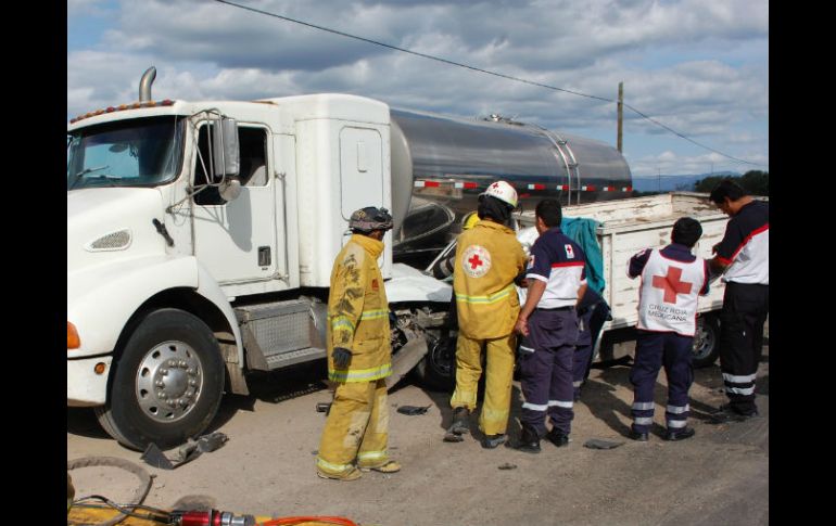 Jalisco | El accidente ocurre en la vía que conduce de Lagos de Moreno a Ojuelo Fallecen dos hombres en accidente carretero El accidente ocurre en la vía que conduce de Lagos de Moreno a Ojuelo Por: EL INFORMADOR 24 de octubre de 2013 - 21:41 hs Bomberos locales y paramédicos realizaron el rescate de las víctimas. ESPECIAL / LAGOS DE MORENO, JALISCO (24/OCT/2013).- Dos jóvenes murieron en un accidente vial en la Región Altos Norte; ambos eran vecinos de la ciudad de Irapuato, Guanajuato. El accidente ocurrió este miércoles en la vía que conduce de Lagos de Moreno a Ojuelo, a la altura del Libramiento Norte, donde una camioneta Nissan estaquitas blanca se estrelló contra un tráiler. De acuerdo con autoridades municipales, el chofer la camioneta presuntamente se impactó en contra de un camión que transportaba hielo. Por el impacto, la camioneta terminó estrellada contra una pipa estacionada que transportaba gasolina. Bomberos locales y paramédicos realizaron el rescate de las víctimas identificadas como Juan Carlos Gallaga Murillo, de 24 años, y Francisco Javier Ávila Alvarado, de 23 años. Un hermano de Juan Carlos dijo a las autoridades que su pariente se dedicaba a vender frutar y verduras y al momento del percance carretero, ambos hombres se dirigían a la ciudad de Aguascalientes. Temas Seguridad Accidentes con muertes en Jalisco Bomberos Lee También Rescatan a mujer víctima de secuestro virtual en Teocaltiche Esto costará el Gas LP en Jalisco en la semana del 20 al 25 de octubre Astros de Jalisco desafía al vigente campeón en la final de zona de la LNBP Aeropuerto de Guadalajara: ¿A dónde te lleva el nuevo servicio de shuttle? Recibe las últimas noticias en tu e-mail Todo lo que necesitas saber para comenzar tu día Registrarse implica aceptar los Términos y Condiciones