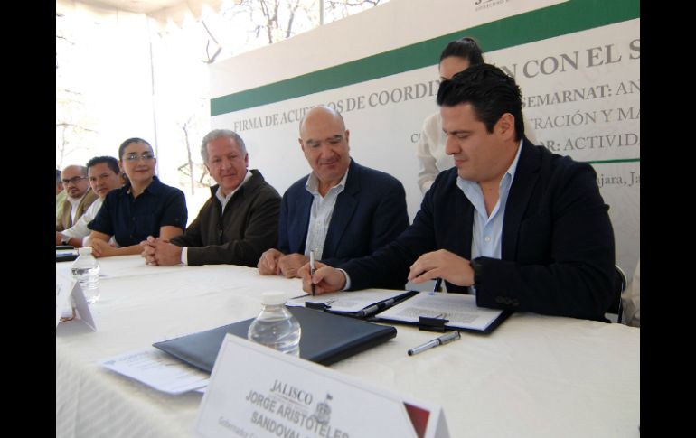 Jalisco | El Gobierno de Jalisco toma el control del Bosque La Primavera Firman convenios para protección del medio ambiente En un evento en el Bosque La Primavera, el Gobierno de Jalisco y el Gobierno federal firman tres convenios para la protección del medio ambiente en el Estado Por: EL INFORMADOR 5 de abril de 2013 - 13:23 hs El gobernador del Estado, durante la firma del convenio. / GUADALAJARA, JALISCO (05/ABR/2013).- El Gobierno del Estado y el Gobierno federal firmaron tres convenios para la protección del medio ambiente en Jalisco. El representante de la federación en el acto, realizado en La Primavera, fue Juan José Guerra Abud, secretario del Medio Ambiente y Recursos Naturales. El primer convenio es para que el Gobierno del Estado tome el control en la administración y manejo de La Primavera, cedido por la Comisión Nacional de Áreas Naturales Protegidas (CONANP). El segundo convenio establece la coordinación entre el Estado y la Comisión Nacional Forestal (CONAFOR). La inversión conjunta en materia forestal asciende 436.6 millones de pesos. Para combatir incendios forestales será de 10 millones 285 mil 503 pesos. El tercer convenio establece la entrega de 81 millones de pesos por parte de la federación para realizar siete proyectos ambientales en Jalisco. EL INFORMADOR/ ROBERTO MEDINA Temas Bosque La Primavera Gobierno del Estado Aristóteles Sandoval Conanp Recibe las últimas noticias en tu e-mail Todo lo que necesitas saber para comenzar tu día Registrarse implica aceptar los Términos y Condiciones