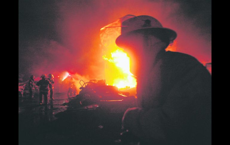 Jalisco | Saldo del incendio del viernes por la noche en Tlaquepaque Fueron 20 camiones quemados Saldo del incendio del viernes por la noche en Tlaquepaque Por: EL INFORMADOR 13 de abril de 2014 - 03:18 hs El viernes por la noche se registró el fuerte incendio en una pensión de camiones de carga. / TLAQUEPAQUE, JALISCO (13/ABR/2014).- Un total de 20 tractocamiones y 11 cajas de remolque fue lo que consumió o dañó el fuego tras el incendio que se registró la noche del pasado viernes en Tlaquepaque, detalló la Policía Municipal. El siniestro provocó la movilización hacia las 20:30 horas de un centenar de bomberos de Tlaquepaque, Zapopan, Guadalajara y de Protección Civil del Estado, quienes acudieron a un inmueble de 150 por 100 metros ubicado en el cruce de Bahía de Todos los Santos y Camino Real a Colima, en Parques de Santa María. Para realizar las labores y prevenir riesgos a la población se evacuó a alrededor de un millar de personas de los alrededores, toda vez que hubo cerca de una veintena de explosiones de tanques de combustible de los camiones quemados. El velador del lugar, Ignacio Oceguera, de 61 años, aseguró a las autoridades desconocer las causas del incendio. Ayer, personal de la Fiscalía estatal estuvo presente en el lugar para indagar sobre la causa del fuego. Arde bodega de madera en Tlajomulco Ayer por la tarde se registró un incendio en una bodega de madera en el municipio de Tlajomulco de Zúñiga, el cual fue atendido y controlado por bomberos de dicho municipio, informaron autoridades. El accidente ocurrió poco después de las 16:00 horas en un inmueble ubicado en el cruce de las calles Margarita y Las Rosas, en Jardines del Zapote, en El Zapote del Valle. En colaboración con Protección Civil de El Salto y del Estado, los tragahumos controlaron el incendio, que no dejó personas lesionadas. Minutos después de las 17:00 horas el fuego ya estaba controlado. Temas Seguridad Incendios Bomberos Lee También Hechos violentos en Teocaltiche son respuesta a operativos, afirma Lemus Detienen a pareja por extorsionar a hombre en el Centro Histórico Vinculan a proceso a joven implicado en violento robo en avenida Del Mercado Presuntos implicados en nueva modalidad de extorsión tendrán audiencia ESTE día Recibe las últimas noticias en tu e-mail Todo lo que necesitas saber para comenzar tu día Registrarse implica aceptar los Términos y Condiciones