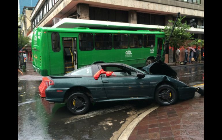 Jalisco | Un automóvil y un camión de la ruta 51-C protagonizan el accidente Fuerte accidente vehicular, en el Centro de Guadalajara Hay lesionados; el autobús se estrella en una finca. Según testigos, el conductor del particular estaba ebrio Por: EL INFORMADOR 5 de noviembre de 2014 - 07:24 hs La unidad de transporte público se estrella en una finca que ocupa un restaurante de comida china. EL INFORMADOR / U. Zamarroni GUADALAJARA, JALISCO (05/NOV/2014).- Un fuerte accidente se registró esta mañana en los cruces de la avenida Juárez y la calle Enrique González Martínez, en el Centro de Guadalajara. Según los testigos del hecho, un automóvil compacto eclipse verde impactó a un camión de la ruta 51-C, con número económico 5005, lo que provocó que la unidad de transporte público se estrellara en una finca que ocupa un restaurante de comida china. Los pasajeros del autobús señalaron que el conductor del vehículo particular mostraba signos de embriaguez. Sin embargo, al tratar de detenerlo, el hombre se dio a la fuga. ''Yo venía hasta adelante y el camión iba bien con el semáforo en verde, pero el del coche se pasó el alto, dicen que venía borracho y con el impacto yo me estrellé con la ventanilla y me lastimé el cuello. Luego el del coche dijo que iba a hablar por teléfono, pero se fue'', dijo Consuelo Estrada Calderón, de 44 años, pasajera del camión. Preliminarmente, ocho son los heridos, aunque sólo uno decidió ser atentido por paramédicos de la Cruz Roja, quienes lo trasladaron a unidad del Parque Morelos, con una fractura de rodilla. La circulación sólo se encuentra detenida en Enrique González Martínez. Avenida Juárez no presenta cortes a la circulación vehicular. Temas Seguridad Transporte Público Accidentes Lee También Helicóptero se desploma en Huntington Beach, California; reportan cinco heridos Tres personas resultan lesionadas tras explosión de camión en carretera México-Puebla Atención, MiBici cerrará 12 estaciones por la Romería 2025 Detienen a asesino de joven en partido de futbol Recibe las últimas noticias en tu e-mail Todo lo que necesitas saber para comenzar tu día Registrarse implica aceptar los Términos y Condiciones
