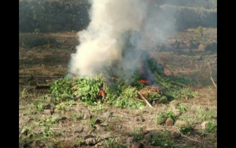 Jalisco | Realizaban un recorrido de vigilancia cuando detectaron los cinco sembradíos Fuerza Única incinera cerca de 90 mil plantas de mariguana Realizaban un recorrido de vigilancia cuando detectaron los cinco sembradíos en el ejido de Huajacatlán Por: NTX 28 de febrero de 2016 - 17:42 hs El enervante fue trasladado y puesto a disposición del agente del Ministerio Público Federal. TWITTER / @FiscaliaJal GUADALAJARA, JALISCO (28/FEB/2016).- La Fiscalía General del estado informó que cerca de 90 mil plantas de mariguana fueron incineradas por personal de la Fuerza Única Regional en el municipio de Hostotipaquillo. Agregó que elementos de la Fiscalía estatal que realizaban un recorrido de vigilancia por predios del ejido Huajacatlán, detectaron cinco terrenos sembrados con plantas de vegetal verde, en una extensión total de 22 mil 450 metros cuadrados. Señaló que el mayor de los sembradíos tenía una extensión de 15 mil metros cuadrados y por cada uno existían cuatro plantas, para dar un total de 60 mil. Puntualizó que en los otros terrenos fueron detectadas 600, seis mil 400, 10 mil y 12 mil 800 plantas, respectivamente. Añadió que los sembradíos fueron destruidos e incinerados por el personal de la Fuerza Única Regional, quienes dieron parte a la autoridad correspondiente. Apuntó que posteriormente, por la brecha que conduce de la delegación de Huajacatlán al predio La Uvita, los policías estatales localizaron y aseguraron nueve costales de yute con vegetal verde y seco en greña al parecer mariguana, con un peso de 65 kilogramos. Además encontraron dos atados de lona con plantas de deshidratación del mismo vegetal con un peso de 60 kilogramos, y un costal de yute conteniendo semilla para el cultivo de este enervante con un peso de cinco kilogramos. Destacó que el enervante fue trasladado y puesto a disposición del agente del Ministerio Público Federal y en ambos hechos no se logró la detención de personas. Temas Seguridad Mariguana Fiscalía de Jalisco (FGE) Fuerza Única Jalisco Lee También Esta es la historia del "Marigalante" el barco hundido en Puerto Vallarta Policía de Zapopan realiza cinco detenciones en una semana Astros de Jalisco doblega a Xalapa y se pone a un juego de la Final de Zona Escuela Gómez de Mendiola celebra sus primeros 75 años al servicio de los tapatíos Recibe las últimas noticias en tu e-mail Todo lo que necesitas saber para comenzar tu día Registrarse implica aceptar los Términos y Condiciones