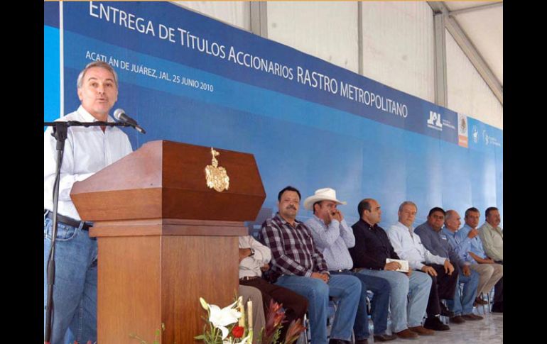 Jalisco | Se prevé funcione a principios de 2011 Garantizan apertura de Rastro TIF en Acatlán, el mayor de Latinoamérica El gobernador Emilio González hizo la entrega de títulos accionarios a 132 asociaciones ganaderas locales Por: EL INFORMADOR 26 de junio de 2010 - 05:41 hs El Gobernador Emilio González encabezó el encuentro con ganaderos y funcionarios para presentar avances del TIF. ESPECIAL / GUADALAJARA, JALISCO (26/JUN/2010).- El rastro que se construye en Acatlán, de Tipo Inspección Federal (TIF), marcará una nueva etapa para la ganadería jalisciense, de modo que los cortes de carne recuperen segmentos de mercado que se han perdido ante la producción de otros estados y del extranjero, según pronósticos de autoridades federales y estatales, así como de los gremios de productores de bovinos y cerdos. Ayer, el gobernador Emilio González hizo la entrega de títulos accionarios a 132 asociaciones ganaderas locales que serán socios en el centro de matanza, que se prevé funcione a principios de 2011. Será el mayor en Latinoamérica en sus montos de sacrificio de animales, además de que operará con altos estándares en el manejo higiénico de la carne y adecuado tratamiento de los desechos para no perjudicar al medio ambiente. Temas Municipios Emilio González Ganado Lee También Guadalajara amanece fresco, pero viene calor por la tarde Colonias tapatías con mayor número de infractores por tirar basura ¿Qué día de la semana hará más calor en Guadalajara? Viene calor a Guadalajara a partir de este lunes 20 de octubre Recibe las últimas noticias en tu e-mail Todo lo que necesitas saber para comenzar tu día Registrarse implica aceptar los Términos y Condiciones