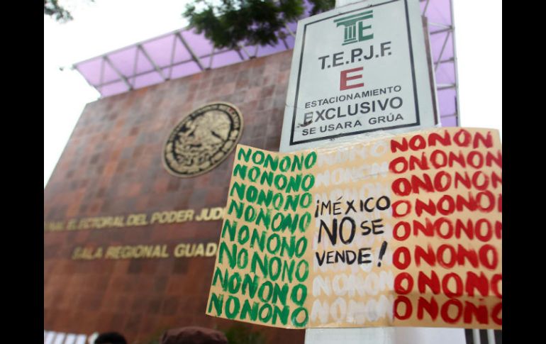 Jalisco | Integrantes del movimiento #YoSoy132 GDL se inconforman por fallo a favor de Peña Guadalajara replica protesta por resolución del Tribunal Electoral Integrantes del movimiento #YoSoy132 en Guadalajara protestan en inmediaciones del TEPJF en la ciudad por el fallo a favor de Peña Nieto como presidente electo Por: EL INFORMADOR 31 de agosto de 2012 - 18:37 hs Integrantes de #YoSoy132 GDL colgaron consignas de protesta en los postes. / GUADALAJARA, JALISCO (31/AGO/2012).- Que asesinaron a la democracia, dicen los integrantes del movimiento #YoSoy132 y ciudadanos inconformes que protestan en las inmediaciones de la sala regional del Tribunal Electoral del Poder Judicial de la Federación (TEPJF), por el fallo a favor de Enrique Peña Nieto como presidente electo de la República. Anuncian que podrían pasar allí la noche. Son alrededor de 50 personas, jóvenes y adultos, quienes alzan carteles repudiando al órgano judicial y al priista electo. Cuelgan consignas de los postes y pintan el suelo con "No", refiriéndose a la "imposición" del candidato. Aunque no bloquean la circulación de las calles y sólo estallan en gritos cuando los vehículos se detienen, por la mañana acudieron a lanzar pintura roja el exterior del Tribunal, en signo de que el órgano judicial "asesinó a la patria". "Estamos decepcionados pero nosotros no hemos perdido el piso; ya veíamos venir una convalidación legal de una imposición y estamos preparados para llevar una agenda del movimiento que sirva de contrapeso a los posibles retrocesos autoritarios que esta resolución traiga consigo", adelantó Rodrigo Cornejo, uno de los voceros de #YoSoy132. A la protesta también acudieron adultos y padres de familia indignados con la ratificación de Peña Nieto, pues consideran arbitraria la decisión y necesaria la protesta. "Es una burla lo que hicieron, creen que nada más López Obrador se inconformó, y no. Yo vengo aquí por mis hijos, porque no quiero que sigan viviendo todos los años lo que yo he vivido de fraude, quiero un nuevo país para ellos", refirió Lorena Ron. En tanto, elementos de seguridad resguardan las instalaciones desde el interior del inmueble. Por otro lado, a temprana hora, fueron esposados cinco integrantes del movimiento en las inmediaciones del parque Revolución, informó Rodrigo Cornejo, asegurando que se encontraban pegando carteles que contenían el artículo 39 cuando fueron increpados por la Policía de Guadalajara, que los dejó ir unos minutos más tarde sin que fueran trasladados. EL INFORMADOR / VIOLETA MELÉNDEZ Temas Municipios TEPJF Elecciones México 2012 #YoSoy132 Lee También Astros de Jalisco mantiene su constancia, aunque el título del la LNBP sigue pendiente Vive Latino 2026: Artistas, precios oficiales y fechas de preventa ¿Dónde ver EN VIVO el partido amistoso México vs Ecuador? Trabajadores del SAT se manifiestan en Jalisco Recibe las últimas noticias en tu e-mail Todo lo que necesitas saber para comenzar tu día Registrarse implica aceptar los Términos y Condiciones