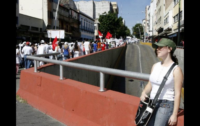 Jalisco | Estiman hasta 24 mil asistentes a la movilización de la UdeG Hasta las 16:00 horas se estima normalización en Centro Histórico El flujo constante de personas en el primer cuadro impide que haya condiciones para permitir el paso de vehículos Por: EL INFORMADOR 29 de septiembre de 2010 - 12:55 hs Desde las 10:00 horas comenzaron los cortes a la cuirculación por el paso de los contingentes. M FREYRIA / GUADALAJARA, JALISCO (29/SEP/2010).- El cierre de vialidades en el primer cuadro de Guadalajara se prolongará hasta las 16:00 horas según informó el director de la Secretaría de Vialidad y Transporte, Felipe Prado Trejo. Al presentar el operativo con motivo de la movilización convocada por la Universidad de Guadalajara (UdeG), la dependencia había planeado regresar a la circulación normal alrededor de las 14:00 horas sin embargo el constante flujo de peatones impide reabrir el paso a vehículos. Aunque la marcha ya concluyó, aún hay presencia de muchos jóvenes en las calles del centro, por lo que las autoridades no consideran conveniente permitir el tránsito de coches, ante el riesgo de que de registre algún accidente. Minutos antes de las 14:00 horas, la Secretaría sólo ha informado de la normalización en el cruce de avenida Alcalde y Ávila Camacho y en avenida Revolución y Calzada Independencia. Así mismo reportan congestionamientos en la calle Fidel Velázquez al igual que avenida Circunvalación y Normalistas e incluso en otras arterias más alejadas de la zona como Lázaro Cárdenas-López Mateos. La dependencia también estimó que de acuerdo con la medición de personas por metro por cuadrado, unas 24 mil personas habrían asistido a la manifestación de la UdeG. Temas Vialidad Centro Histórico SVyT Recibe las últimas noticias en tu e-mail Todo lo que necesitas saber para comenzar tu día Registrarse implica aceptar los Términos y Condiciones