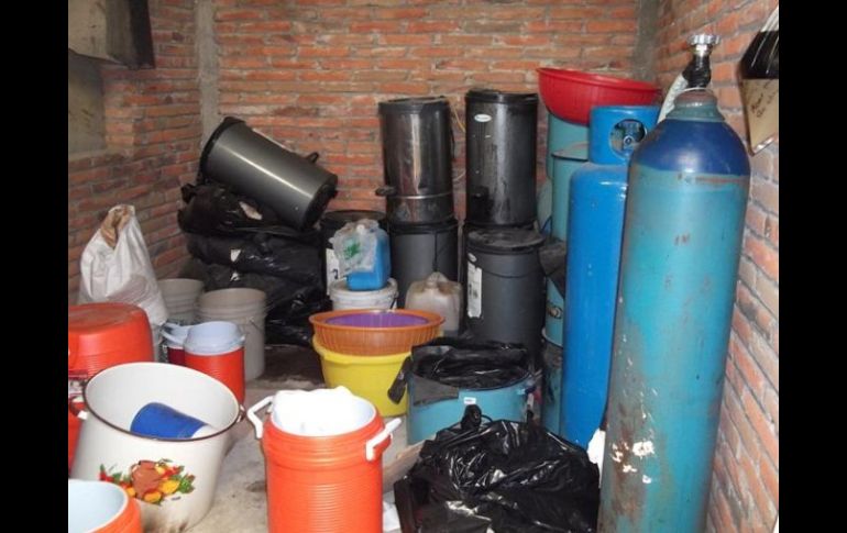 Jalisco | Aseguran más de cuatro toneladas y media de sustancias químicas Incautan narcolaboratorio y arsenal en Tuxpan Aseguran más de cuatro toneladas y media de sustancias químicas Por: NTX 16 de julio de 2011 - 12:06 hs El aseguramiento forma parte de la Estrategia Integral del Estado Mexicano en contra del Narcotráfico. ESPECIAL. / ZAPOPAN, JALISCO (16/JUL/2011).- Personal militar, en dos eventos diferentes, incautó un laboratorio para elaborar droga sintética con más de cuatro toneladas y media de sustancias químicas, droga, cinco armas y vehículos robados en Tuxpan y Tizapan el Alto. En un comunicado, la Secretaría de la Defensa Nacional ( Sedena), por conducto de la XV Zona Militar, informó que el aseguramiento forma parte de la Estrategia Integral del Estado Mexicano en contra del Narcotráfico y la Delincuencia Organizada. Detalló que personal militar durante reconocimientos terrestres y patrullajes aseguraron en el municipio de Tuxpan el laboratorio, en las inmediaciones del poblado Atenquique. Asimismo, incautaron 20 kilogramos de ácido fenil acético, sustancia química esencial para la elaboración de metanfetamina, mil 200 litros de acetona, 650 kilogramos de sosa en escamas, mil litros de alcohol y 400 kilogramos de sustancias químicas. Asimismo, 375 kilogramos de acetato de sodio, 150 kilogramos de ácido tartárico, 400 litros de cloro, 400 kilogramos de tolueno, seis alambiques de acero inoxidable, seis cilindros de oxígeno, siete ollas metálicas, seis secadoras y cuatro tubos de acero inoxidable. En tanto, en el municipio de Tizapán El Alto, al realizar patrullajes en inmediaciones del poblado Mismaloya, aseguraron 242 kilogramos de marihuana y cinco grapas de polvo blanco con características propias de la cocaína. Además, una carabina calibre 30 M1, una escopeta calibre 12 milímetros marca Remington, una pistola calibre 0.45, una pistola calibre nueve milímetros, un revolver calibre 0.44, nueve cargadores para diferentes calibres y 60 cartuchos de diferentes calibres. También una camioneta Nissan Pathfinder, modelo 1992, con reporte de robo, un vehículo Nissan Tsuru, modelo 2002, con reporte de robo y un vehículo Nissan Tsuru, modelo 2004, con reporte de robo. Con este laboratorio clandestino, suman 43 los que se han asegurado en la jurisdicción de la XV Zona Militar durante el presente año, además de dos bodegas para almacenar sustancias químicas para la fabricación de drogas sintéticas, informó la Sedena. Temas Seguridad Ejército Narcolaboratorio Recibe las últimas noticias en tu e-mail Todo lo que necesitas saber para comenzar tu día Registrarse implica aceptar los Términos y Condiciones