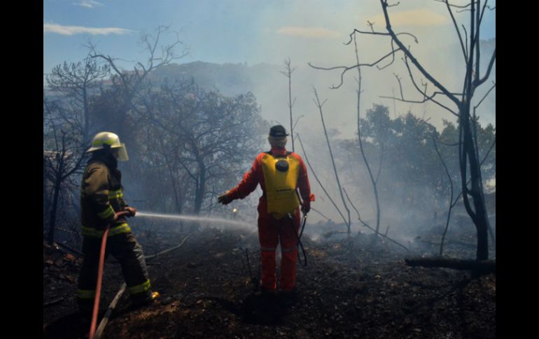 Jalisco | Los hechos se suscitaron alrededor de las 13:30 horas de hoy, en El Palomar Incendio en Palomar quema cerca diez hectáreas Los hechos se suscitaron alrededor de las 13:30 horas de hoy, en una cañada del fraccionamiento El Palomar Por: EL INFORMADOR 24 de marzo de 2014 - 17:10 hs Los 'tragahumos', sofocaron el fuego y evitaron que llegara a la zona habitacional. / TLAJOMULCO DE ZÚÑIGA, JALISCO (24/MAR/2014).- Pasto, árboles y flores se quemaron en un incendio ocurrido en una cañada del fraccionamiento El Palomar, en Tlajomulco de Zúñiga. No hay personas intoxicada, ni quemadas. Los hechos se suscitaron alrededor de las 13:30 horas de este lunes, por lo que acudieron alrededor de 90 bomberos municipales, así, como de la unidad Forestal de la Dirección Municipal de Ecología, personal de Zapopan, de la Brigada 249, y de la Unidad Estatal de Protección Civil y Bomberos de Jalisco, y paramédicos. Además de personal de Secretaría de Medio Ambiente y Desarrollo Territorial ( Semadet) y de la Comisión Nacional Forestal ( Conafor). Los "tragahumos", sofocaron el fuego y evitaron que llegara a la zona habitacional. Sin embargo, el calor de éste, provocó que la defensa de plástico de una camioneta Murano, se deformara. Las autoridades municipales, reportaron que el incendio fue apagado alrededor de las 17:00 horas, y había consumido un promedio de 10 hectáreas entre pasto y pequeños árboles, además de otra de árboles adultos, pero se desconoce cómo se inició el incendio. Temas Incendios Municipios Ayuntamiento de Tlajomulco de Zúñiga Semadet Lee También Clima en Tlajomulco de Zúñiga hoy: el pronóstico para el domingo 19 de octubre de 2025 Mascota, el viaje prometido ¿Dónde vacunarán en Jalisco ante la llegada del frío? Localizan cuerpo en Tlaquepaque Recibe las últimas noticias en tu e-mail Todo lo que necesitas saber para comenzar tu día Registrarse implica aceptar los Términos y Condiciones
