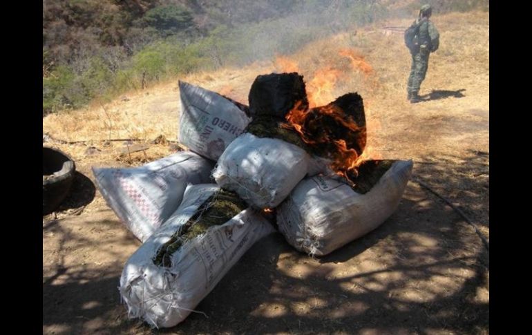 Jalisco | Operativos militares Incineran más de dos toneladas de mariguana en “secaderos” En ninguno de los casos hubo personas detenidas Por: EL INFORMADOR 16 de febrero de 2011 - 04:32 hs La droga fue quemada en el mismo lugar donde fue encontrada por los soldados. ESPECIAL / PIHUAMO, JALISCO (16/FEB/2011).- Los recorridos de vigilancia por parte de elementos de la Secretaría de la Defensa Nacional ( Sedena) en diferentes municipios de la Entidad, dio como resultado la destrucción de cinco “secaderos” de mariguana, donde se localizaron dos mil 226 kilogramos del enervante y 14 kilos más de semilla del mismo enervante. Elementos de la Quinta Región Militar, quienes inspeccionaban terrenos del poblado de Los Naranjos, en el municipio de Pihuamo, localizaron dos secaderos de mariguana donde se encontraba aproximadamente 550 kilos del enervante. Posteriormente acudieron a las inmediaciones del poblado de La Guadalupana, en el mismo municipio, donde quemaron otros 400 kilos de la droga mencionada. Antes de retirarse del municipio, los soldados llegaron al poblado conocido como El Carrizo, donde localizaron e incineraron media tonelada de mariguana y cinco kilos de semilla del mismo enervante. En el segundo operativo, personal castrense acudió a los ranchos conocidos como La Popota y El Platanito, en el municipio de San Martín de Bolaños, donde aseguraron y quemaron 196 kilos de la droga, ya empaquetada, y nueve kilos de semilla, además de otros 590 kilos más del enervante. En ninguno de los casos hubo personas detenidos. Asimismo, la Sedena explicó que durante este año se han destruido 344 toneladas del enervante en diferentes puntos de la Entidad. Temas Seguridad Sedena Decomisos de droga en Jalisco Lee También Recuperan camión de carga robado en Tlajomulco Denuncia en su contra es para ocultar un fraude: Hermana de Omar "N" Protección Civil reabre el malecón de Puerto Vallarta Detienen a asesino de joven en partido de futbol Recibe las últimas noticias en tu e-mail Todo lo que necesitas saber para comenzar tu día Registrarse implica aceptar los Términos y Condiciones
