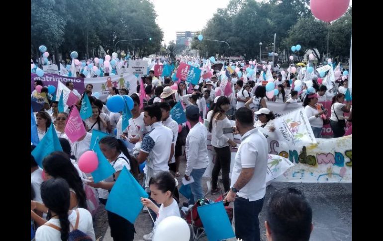 GUADALAJARA, JALISCO (10/SEP/2016).- Los asistentes a la Marcha por la Familia en la capital de Jalisco, se comenzaron a congregar poco después de las 16:00 horas en la Glorieta Minerva.Se tienen reportes que además de familias de la Zona Metropolitana, están presentes algunos grupos de simpatizantes de municipios como Atotonilco y Jesus María, e incluso del estado de Sinaloa.La marcha dará inicio a las 17:00 horas y será a partir de este punto hacia el Oriente por avenida Vallarta, hasta llegar al cruce con Chapultepec para luego dirigirse hacia Mariano Otero para una concentración en la Glorieta Niños Héroes.Mientras esperan el arranque de la marcha, los asistentes gritan esporádicamente "Se ve, se siente, la familia está presente".Según cifras de Movilidad se estima una asistencia de alrededor de 30 mil personas, por lo que alrededor de las 14:30 horas comenzaron los cortes viales a lo largo de la ruta.Estos cierres de calles y avenidas, sumado al tráfico habitual de los fines de semana, generó una intensa carga vehicular en toda la zona de avenida López Mateos.Por el operativo vial, la circulación por avenida Vallarta, hacia la Minerva es desviada en el cruce con Enrique Díaz de León.