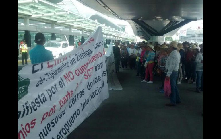 GUADALAJARA, JALISCO (12/JUN/2017).- La mañana de este lunes comenzaron las manifestaciones que los ejidatarios de El Zapote anticiparon que realizarían a diario hacia el Aeropuerto de Guadalajara; esto, en demanda de la solución al conflicto con la Secretaría de Comunicaciones y Transportes (SCT) por el pago que exigen de los terrenos del ejido sobre los que se construyó la terminal aérea.“Por el incumplimiento de la SCT para cumplir el convenio que elaboramos con el Grupo Aeroportuario del Pacífico (GAP) con autorización del oficial mayor de la SCT (Rodrigo Ramírez Reyes)”, justificó Sergio Pérez, representante legal de los demandantes.Fueron alrededor de 300 personas las que partieron desde el lugar conocido como El 15 con rumbo al aeropuerto lugar al que llegaron hacia el mediodía. Durante su marcha se generó un importante conflicto vial sobre la carretera a Chapala.El viernes pasado representantes de El Zapote sostuvieron una reunión con la iniciativa privada donde las cúpulas empresariales anunciaron que enviarían una carta al titular de la SCT, Gerardo Ruiz Esparza, para exigirle que cumpliera con las resoluciones dictadas por autoridades judiciales, que implican el pago de los terrenos del aeropuerto.Fue en este encuentro que los ejidatarios anunciaron que desde este lunes comenzarían a manifestarse a diario sobre la carretera a Chapala con rumbo al aeropuerto hasta obtener respuesta satisfactoria de la SCT para la firma del convenio.En este acuerdo el GAP está dispuesto al pago de las 307 hectáreas tomadas a El Zapote más otras 137, en propiedad del ejido actualmente, para la construcción de una segunda pista y talleres a cambio de que la SCT le amplíe los años de concesión. Sin embargo la dependencia federal no ha destrabado el asunto.Pérez informó que las manifestaciones serán a diario. Este martes será la segunda y así seguirán hasta que no haya respuesta de las autoridades.EL INFORMADOR / SERGIO BLANCO
