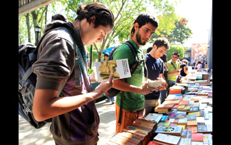 Jalisco | Estudiantes del plantel organizan feria para su venta Invitan en el CUCSH a leer libros usados Estudiantes del plantel son los encargados de la feria que celebra su quinta edición, y que permanecerá hasta el jueves Por: EL INFORMADOR 29 de agosto de 2011 - 15:02 hs La Feria de Libros Usados se ubica hasta el jueves en el jardín de Filosofía del CUCSH. M. FREYRIA / GUADALAJARA, JALISCO (29/AGO/2011).- Libros de Gabriel García Márquez en 80 pesos, títulos clásicos en menos de 100, libros de colección así como primeras ediciones o importaciones en menos de 200 pesos, son algunos de los ejemplares que se pueden encontrar en la Feria del Libro Usado que se presenta en el jardín de Filosofía del Centro Universitario de Ciencias Sociales y Humanidades (CUCSH) de la Universidad de Guadalajara (UdeG). "La intención (de la Feria) es que los compañeros puedan ahorrarse unos pesos, porque ahorita la situación no está para andar gastando de más”, dice Yuliana Paredes Castillo, consejera estudiantil y una de las organizadoras de esta feria. Según la joven estudiante, un alumno de las carreras afines a las ciencias sociales puede gastar, en promedio, de mil a mil 500 pesos por semestre en libros, "con esta feria ellos se pueden ahorrar más del 50%", afirma la representante del grupo estudiantil Históricos y Humanos. Con esta feria suman ya cinco ediciones de este proyecto en el cual se le suman actividades culturales y de recreación. "Es una feria para todas las personas, no sólo hay libros de Filosofía o Historia, también hay literatura en general, y hasta esoterismo si quieres". Las actividades se pueden consultar en la página web: www.facebook.com/ghh La feria, que se mantendrá hasta el jueves en el jardín de Filosofía del CUCSH, se localiza en la puerta tres del centro universitario, en avenida Maestros y Mariano Bárcenas. El horario es de 10:00 a 19:00 horas. La entrada es libre. EL INFORMADOR / OMAR GARCÍA Temas Educación local UdeG Libros Recibe las últimas noticias en tu e-mail Todo lo que necesitas saber para comenzar tu día Registrarse implica aceptar los Términos y Condiciones