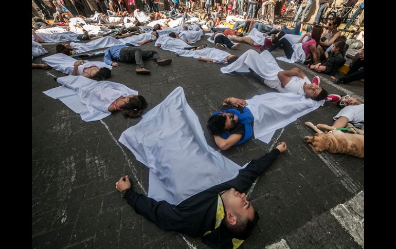 Jalisco | Con un Flashmob, llaman la atención a las afueras de Palacio de Gobierno Jóvenes piden acelerar renovación de transporte público Con un Flashmob, unas 80 personas llaman la atención a las afueras de Palacio de Gobierno con el movimiento 'Pide la Parada' Por: EL INFORMADOR 3 de febrero de 2014 - 12:12 hs Entregarán peticiones a Movilidad para lograr el cambio de unidades. / GUADALAJARA, JALISCO (03/FEB/2014).- El problema de transporte público que tiene la Zona Metropolitana de Guadalajara no se soluciona sólo con las recién creadas ley y reglamento de Movilidad; se necesita que la autoridad presione a los concesionarios y haga cumplir la norma. Con ese argumento, unas 80 personas, la mayoría de ellas jóvenes, representaron a los 404 víctimas del transporte público que ha habido del transporte público desde 2005. Alejandro Hermosillo, integrante de la agrupación política Altavoz, dijo que era "alarmante" que en el primer mes haya registro de ocho personas muertas debido a la operación de vehículos del transporte público. "Estamos hablando de dos muertos por semana, si se mantuviera esa cifra serían más de 100 al final del año, esto tiene que cambiar y tiene que ser pronto". Tiradas en el piso de la calle Pedro Moreno, a espaldas del Palacio de Gobierno, unas cincuenta personas con playera blanca o con sábanas del mismo color, construyeron con sus cuerpos la palabra SOS, que es la señal de socorro utilizada internacionalmente. El movimiento llamado Pide la Parada busca que otras organizaciones como #PosmesaltoGDL y la Federación de Estudiantes Universitarios puedan conjuntar sus peticiones para que la Secretaría de Movilidad comience a debatir el tema. Este martes entregarán una lista de peticiones a Movilidad y al Despacho del Gobernador, para que se acelere la renovación de las unidades de transporte público, de la décima parte por año que prometió Mauricio Gudiño, titular de la dependencia; a una quinta parte. "No podemos esperar 10 años a que se renueve el transporte". Otra de las peticiones es utilizar "camiones comodines" en las rutas con mayor saturación de usuarios en horas pico, lo que ocasionaría que las personas opten por utilizar el transporte, siempre y cuando sea cómodo y seguro. Luego de 20 minutos, los jóvenes se retiraron permitiendo la circulación sin mayor complicación. EL INFORMADOR/ OMAR GARCÍA Temas Manifestaciones en Jalisco Transporte Público Municipios Secretaría de Movilidad Recibe las últimas noticias en tu e-mail Todo lo que necesitas saber para comenzar tu día Registrarse implica aceptar los Términos y Condiciones