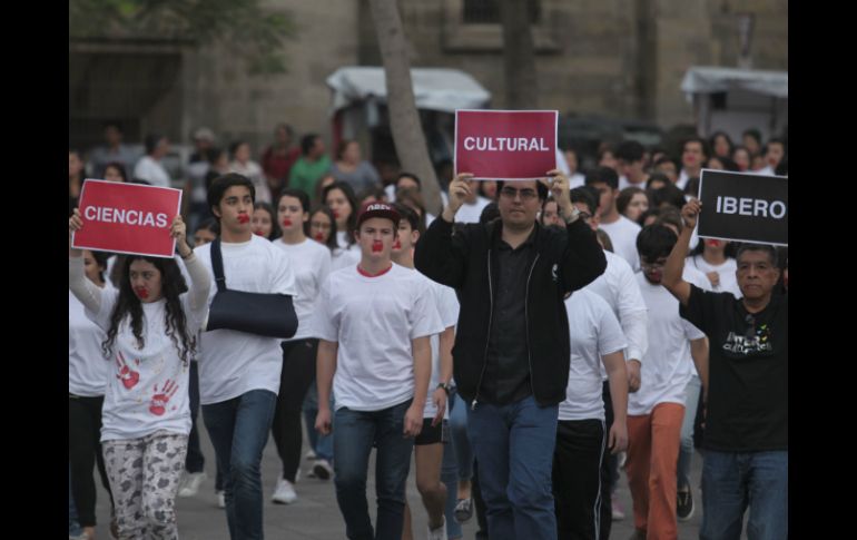 Jalisco | Alrededor de 300 estudiantes rememoraron diversos crímenes con un performance Jóvenes piden por derechos humanos en Plaza Liberación Alrededor de 300 estudiantes rememoraron diversos crímenes con un performance Por: EL INFORMADOR 27 de febrero de 2016 - 19:18 hs Los muchachos se reunieron y tomaron Plaza Liberación para expresar su desacuerdo con las injusticias. EL INFORMADOR / F. Atilano GUADALAJARA, JALISCO (27/FEB/2016).- Al ritmo de sonidos que suenan como tambores, 300 jóvenes estudiantes se dirigen hacia el centro de Plaza Liberación. Tras dar una vuelta se quedan parados y una voz de una mujer recuerda a los periodistas que han sido asesinados por decir la verdad. Algunos miembros del grupo caen al suelo. Luego rememora a los que han sido discriminados por sus preferencias sexuales y otra parte de los estudiantes se dejan caer. Lo mismo pasa cuando recuerdan los feminicidios, los que han sido encontrados en fosas clandestinas, los que viven en pobreza extrema, los que han claudicado por la violencia del narcotráfico y los miles de desaparecidos. Al final ya no queda nadie en pie. "Tú que vives con el salario mínimo, ¡estamos contigo!" vuelve a decir la voz femenina y algunos jóvenes se levantan. Lo mismo sucede con los que representan a las mujeres asesinadas, los migrantes, los que viven en pobreza extrema, los que nunca han vuelto a casa. De nuevo todos están en pie. El performance que se realizó esta tarde en Plaza Liberación fue organizado por alumnos del Instituto de Ciencias como parte de los interculturales que llevan a cabo los alumnos de los seis colegios de la Compañía de Jesús y que tuvieron como tema "Los derechos humanos en México, entre la sombra y la esperanza". "En este contexto los chavos se reúnen, toman Plaza Liberación para expresar su desacuerdo con las injusticias que estamos viviendo ", dijo José Carlos Crocker, director de la preparatoria del Instituto de Ciencias. El alumno Javier Rodríguez Mira, comisionado de interculturales, calificó el suceso -en el que participaron 320 estudiantes- como un medio de denuncia a través del arte para expresar su descontento con la situación que vive el país, sobre todo en materia de violencia. " Estamos tomando como tema principal los derechos humanos. El objetivo es provocar impacto ". EL DATO En la actividad participaron estudiantes de colegios de Guadalajara, Tijuana, Torreón, Tampico y Puebla. El performance será subido a redes sociales. EL INFORMADOR / ILSE MARTÍNEZ Temas Manifestaciones en Jalisco Guadalajara Municipios Estudiantes Lee También Becas Bienestar: Cómo actualizar tu correo o teléfono en Llave MX si ya no tienes acceso Esto costará el Gas LP en Jalisco en la semana del 13 al 18 de octubre Celebran la participación de 3 millones de personas en la Romería 2025 En misa de bienvenida de "La Generala", cardenal pide por una reforma judicial justa Recibe las últimas noticias en tu e-mail Todo lo que necesitas saber para comenzar tu día Registrarse implica aceptar los Términos y Condiciones
