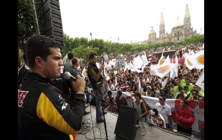 Jalisco | Marco Núñez, líder estudiantil, pide a Emilio González verificar calidad del servicio La FEU reta al gobernador a subirse al camión El líder estudiantil le pide a Emilio González que verificar la calidad del servicio Por: EL INFORMADOR 23 de agosto de 2012 - 13:14 hs Marco Antonio Núñez se dirige a miles de manifestantes congregados en la Plaza Liberación. / GUADALAJARA, JALISCO (23/AGO/2012).- Lo volvieron a hacer. Estudiantes de la Universidad de Guadalajara salieron a las calles de la ciudad a llenar la Plaza Liberación. Esta vez para reclamar el aumento a la tarifa del transporte público. El presidente de la Federación de Estudiantes Universitarios (FEU), Marco Antonio Núñez Becerra, lanzó un reto al gobernador del Estado: que se suba a un camión a verificar la calidad del servicio. "Que se suba y que vea la pésima calidad, que pague con un transvale para que se lo avienten en la cara", sentenció el joven universitario, quien sumó otro reto pero al líder de la Alianza de Camioneros para que haga publica su declaración patrimonial "y si no es buen negocio, pues que dejen las concesiones". Ya en entrevista, Núñez Becerra también descargó contra los alcaldes priistas de la Zona Metropolitana quienes votaron a favor del aumento en la comisión de tarifas. La marcha tuvo varios incidentes a lo largo de su recorrido desde los cuatro puntos de inicio. En dos de ellos, el de Rectoría y La Normal, hubo estudiantes que lanzaron piedras y bolsas con agua a los vehículos del transporte público. Ante esto, el presidente de la FEU comentó que son hechos aislados y justificó "después de esta marcha, hay algunos que se calientan de más. Pero ya hablamos con ellos y no se reporta daño en camiones". El día de mañana el titular de la organización estudiantil se trasladará a Puerto Vallarta para replicar las marchas de protesta. La siguiente semana se darán a conocer los mecanismos legales con los que la FEU tratará de echar abajo el aumento. Por lo pronto, la nueva tarifa de 7 pesos en la Zona Metropolitana entrará en vigor el próximo primero de septiembre. EL INFORMADOR / OMAR GARCÍA Temas Manifestaciones en Jalisco Vialidad FEU Emilio González EL TEMA INFORMADOR Lee También Morena Jalisco respalda Reforma Judicial Comienza en Jalisco la Campaña Nacional de Vacunación de invierno Charros de Jalisco buscará frenar su racha negativa en juegos inaugurales de la LMP Autos con estas placas deben realizar la Verificación Vehicular antes del 31 de octubre Recibe las últimas noticias en tu e-mail Todo lo que necesitas saber para comenzar tu día Registrarse implica aceptar los Términos y Condiciones