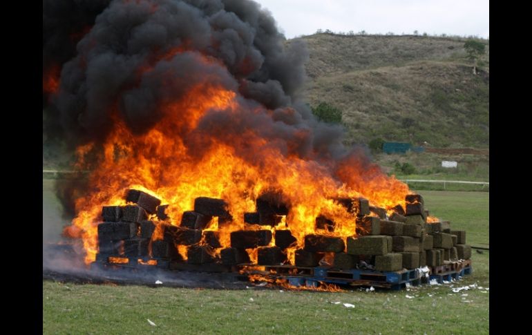 Jalisco | Es producto de más de mil decomisos La PGR incinera dos toneladas de droga en Zapopan La dependencia informó que lo destruido es parte de varios operativos antidrogas en los que participaron policías municipales, estatales y federales Por: EL INFORMADOR 7 de agosto de 2010 - 05:51 hs una columna de humo negro se dejo ver en el club Cinegético de La Venta del Astillero. ESPECIAL / ZAPOPAN, JALISCO (07/AGO/2010).- La Procuraduría General de la República (PGR), delegación Jalisco, incineró más de dos toneladas de diversos tipos de drogas, producto de los operativos realizados por la dependencia federal en la Entidad. Minutos después del mediodía de ayer, una columna de humo negro se dejo ver en el club Cinegético de La Venta del Astillero, ubicado en el municipio de Zapopan, como huella de lo incinerado. Al acto de destrucción de enervantes acudieron representantes de la Procuraduría General de la República. En el acto de incineración participó personal operativo y administrativo de la institución, así como el representante del Órgano Interno de Control de la PGR quien dio fe de la autenticidad y peso de la droga destruida, la cual consistió en mariguana, plantas y semillas del mismo enervante; metanfetaminas, cocaína y más de mil pastillas psicotrópicas. Asimismo, la dependencia federal continúa con las averiguaciones previas correspondientes y acusará a los presuntos responsable por delitos contra la salud en sus diferentes modalidades. Enervantes destruidos Una tonelada 925 kilos de mariguana. 10 kilos de semilla de mariguana. 257 plantas del mismo enervante. 79 kilos metanfetamina. 14 kilogramos de cocaína. Mil 81 pastillas psicotrópicas. Temas Seguridad PGR Decomisos de droga en Jalisco Lee También Comienza en Jalisco la Campaña Nacional de Vacunación de invierno Charros de Jalisco buscará frenar su racha negativa en juegos inaugurales de la LMP Autos con estas placas deben realizar la Verificación Vehicular antes del 31 de octubre Gaby Cárdenas destaca avances en materia de cuidados en su primer año legislativo Recibe las últimas noticias en tu e-mail Todo lo que necesitas saber para comenzar tu día Registrarse implica aceptar los Términos y Condiciones