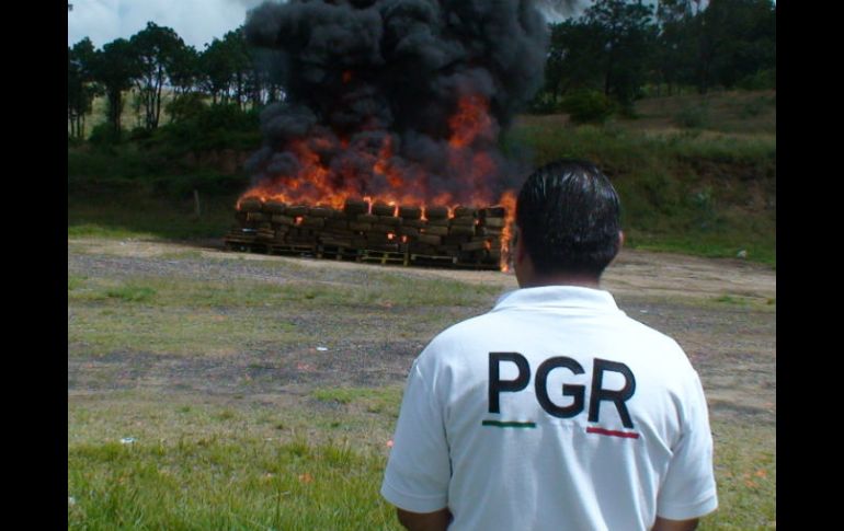 Jalisco | El acto se lleva a cabo en el Club Cinegético de la Venta del Astillero, en Zapopan La PGR incinera más de cuatro toneladas de drogas en Jalisco Los estupefacientes fueron asegurados en operativos de los tres niveles de gobierno Por: EL INFORMADOR 12 de septiembre de 2015 - 14:09 hs Cuatro toneladas de estupefacientes decomisados por los tres niveles de gobierno son incineradas en la Venta del Astillero. ESPECIAL / GUADALAJARA, JALISCO (12/SEP/2015).- La Procuraduría General de la República (PGR) incineró más de cuatro toneladas de distintos estupefacientes, asegurados en operativos llevados a cabo por instituciones de seguridad de los tres niveles de gobierno, en Jalisco. Dicha incineración incluyó cuatro toneladas 350 kilos 87 gramos de marihuana, 561 gramos 620 miligramos de cocaína, 337 gramos 100 miligramos de metanfetamina, 843 gramos 500 miligramos de semilla de marihuana, 924 mililitros de cocaína liquida, 120 psicotrópicos y 286 objetos del delito. El acto se llevó a cabo en las instalaciones del Club Cinegético de la Venta del Astillero, en el municipio de Zapopan, con la asistencia de efectivos de la Agencia de Investigación Criminal (AIC) y un representante del Órgano Interno de Control de la PGR; además, elementos de Protección Civil y Bomberos del municipio referido, así como personal de la Cámara Nacional del Autotransporte de Carga (CANACAR) y del grupo de Inteligencia y Tecnología en Soluciones de Seguridad Privada (IRONTIGERS), verificaron que el procedimiento se llevara a cabo con apego a la normatividad en la materia. Con esta acción, la PGR a través de la Subprocuraduría de Control Regional, Procedimientos Penales y Amparo, por conducto de su Delegación en Jalisco, dio cumplimiento a lo establecido en el Programa de Destrucción de Narcóticos y a lo dispuesto por el Código Federal de Procedimientos Penales, que prevé la destrucción de la droga asegurada. Temas Seguridad Narcotráfico PGR Lee También Omar 'N' es vinculado a proceso por presunto abuso sexual infantil agravado Detienen a hombre señalado por abusar sexualmente de su hija Policías de Tlaquepaque aseguran contenedores con carga millonaria Detienen a una mujer en Zapopan tras presuntamente robar un Costco Recibe las últimas noticias en tu e-mail Todo lo que necesitas saber para comenzar tu día Registrarse implica aceptar los Términos y Condiciones