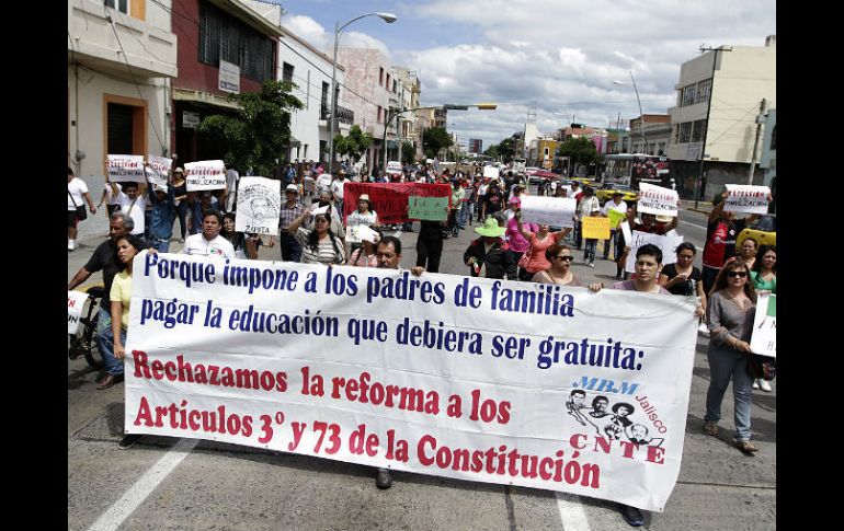 Jalisco | Se les descontará el día a los docentes que no laboren por manifestarse La SEJ niega afectaciones en clases por marchas de mañana Se les descontará el día a los docentes que no laboren por manifestarse Por: EL INFORMADOR 24 de septiembre de 2013 - 17:45 hs EStán anunciadas para mañana algunas marchas de maestros en todo el País y la Entidad. ARCHIVO / GUADALAJARA, JALISCO (24/SEP/2013).- El secretario de Educación Jalisco, Francisco Ayón López, aseguró que pese a que mañana están anunciadas algunas marchas de maestros en todo el País y la Entidad, para manifestarse en contra de la Reforma Educativa que propone el presidente de México, Enrique Peña Nieto, la dependencia estatal debe trabajar de manera normal, y no deben verse afectadas las clases en ningún plantel. "Sabemos del gran compromiso y responsabilidad de cada uno de los maestros de Jalisco, y estamos conscientes de que hay voces discordantes en cuanto a la Reforma Educativa, y estas voces tendrán que generar una situación por un cauce legal correspondiente, sin dañar la situación primordial del sistema educativo, que es la labor docente". Ayón López dijo que hasta el momento se sigue verificando la información de los profesores jaliscienses, que en las pasadas marchas incurrieron en dejar solas las aulas; sin embargo, en ese momento no estaba vigente la Ley General de Educación, a diferencia de esta vez, que ya están en vigor. Es así que, los maestros que falten a clases por más de tres días en un mes, se harán acreedores a una sanción como la de la separación de su salón de clases. En el caso de mañana, que se tiene contemplada una marcha de inconformidad, se descontará el día a los docentes que no laboren. En la marcha anterior, la SEJ detectó que fueron alrededor de 200 escuelas las que pararon labores. "Lo que estamos buscando en esta situación es generar políticas de calidad educativa, y en ese sentido, una fundamental tendrá que ser el trabajo docente en los salones de clases". El secretario negó que sea él quien vaya a encabezar una mesa de negociación con los maestros manifestantes, pues quien lleva el diálogo con ellos es el secretario general de Gobierno, Arturo Zamora Jiménez. EL INFORMADOR / THAMARA VILLASEÑOR Temas Educación SEJ Reforma Educativa Recibe las últimas noticias en tu e-mail Todo lo que necesitas saber para comenzar tu día Registrarse implica aceptar los Términos y Condiciones