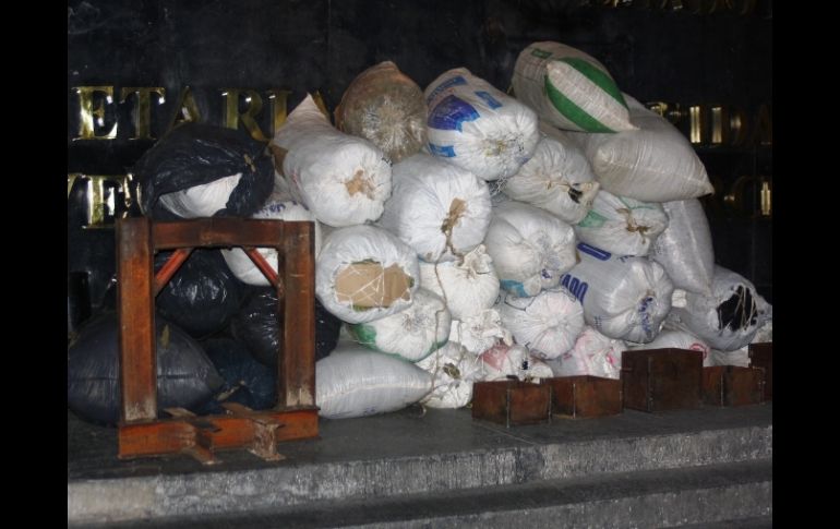 Jalisco | La droga se descubrió gracias al operativo que actualmente hay en la región Valles La SSPE asegura 370 kilos de mariguana La droga se descubrió gracias al operativo que actualmente lleva a cabo la dependencia en la región Valles Por: EL INFORMADOR 23 de febrero de 2013 - 17:25 hs Junto a los costales se encontraron dos prensas y 14 aditamentos de fabricación casera para prensar droga, no hubo detenidos. / GUADALAJARA, JALISCO (23/FEB/2013).- Elementos de la Secretaría de Seguridad Pública del Estado aseguraron 25 costales con mariguana, con un peso aproximado de 370 kilogramos en el municipio de Magdalena. La droga se descubrió gracias al operativo que actualmente lleva a cabo la dependencia en la región Valles (después del asesinato del director de la Policía de Hostotipaquillo, a finales de enero pasado). De acuerdo a un comunicado de prensa, policías estatales realizaban un recorrido de vigilancia en la zona, y al llegar a los cruces de las calles Zaragoza y Lázaro Cárdenas, en el rancho San Simón, "observaron una bodega abandonada, la cual tenía la puerta de ingreso entreabierta y en el interior 25 costales de yute color blanco y siete bolsas de plástico en color negro, las cuales contenían vegetal verde y seco en greña, al parecer mariguana (sic)". Junto a los costales se encontraron dos prensas y 14 aditamentos de fabricación casera para prensar droga, sin embargo, no hubo detenidos. El servicio fue puesto a disposición de agentes del Ministerio Público para su investigación. Después del asesinato del director de la Policía de Hostotipquillo, Lucio Rosales Astorga, a finales de enero, se han llevado a cabo operativos constantes en la región Valles, en dicho municipio, Tequila y Magdalena, lo que ha dado como resultado la aprehensión de más de una veintena de presuntos delincuentes, al parecer, pertenecientes al Cartel de La Corona, principalmente, así como numeroso armamento y gran cantidad de droga. Temas Seguridad Secretaría de Seguridad Pública de Jalisco Mariguana Lee También Astros de Jalisco domina y empata la serie ante los Diablos Rojos Charros apadrinan a 35 academias deportivas en Jalisco Mónica Magaña rinde informe con un encuentro de escucha y retroalimentación Buscan incentivar la comercialización de artesanías en Jalisco Recibe las últimas noticias en tu e-mail Todo lo que necesitas saber para comenzar tu día Registrarse implica aceptar los Términos y Condiciones
