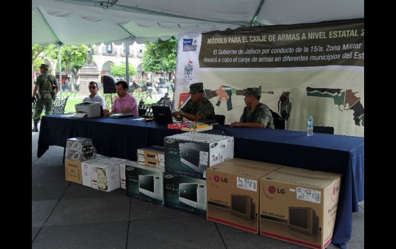 Jalisco | En el centro de canje aceptan cualquier tipo de armas La Sedena inicia cambio de armas por electrodomésticos En Plaza de Armas se intercambian los artefactos por planchas, hornos de microondas, notebooks, vajillas o televisores, según el valor de la pieza entregada Por: EL INFORMADOR 6 de agosto de 2012 - 16:35 hs El centro de canje permanecerá abierto del lunes 6 al domingo 12 de agosto, de las 08:00 a 18:00 horas. / GUADALAJARA, JALISCO (06/AGO/2012).- Para incentivar el desarme de civiles en Jalisco, la Secretaría de la Defensa Nacional (Sedena) emprendió este lunes la jornada de canje de armas en diferentes municipios, entre ellos Guadalajara. En el centro de permuta local, ubicado en Plaza de Armas, frente al Palacio de Gobierno, se intercambian los artefactos por electrodomésticos como planchas, hornos de microondas, notebooks, vajillas o televisores, según el valor de la pieza entregada. De acuerdo con los tenientes a cargo del ejercicio, cualquier clase de arma puede ser permutada: rifles, escopetas, revolver, pistolas calibre 22 ó 50, las cuales son más comunes entre la población civil. Al ser éste el primer día de la recolección los tenientes registran poca respuesta de los ciudadanos, aunque sí mucha curiosidad por preguntar, por lo que esperan que el miércoles comiencen a levantar sus expectativas con mayor intercambio de artículos. El centro de canje permanecerá abierto del lunes 6 al domingo 12 de agosto, de las 08:00 a 18:00 horas. EL INFORMADOR / VIOLETA MELÉNDEZ Temas Sedena Municipios Portación de armas en Jalisco Lee También Un lugar intermedio… Ni para la foto hubo acuerdo Reforma judicial, una historia que se enreda Reforma Judicial en Jalisco: el riesgo de legislar con prisa Recibe las últimas noticias en tu e-mail Todo lo que necesitas saber para comenzar tu día Registrarse implica aceptar los Términos y Condiciones
