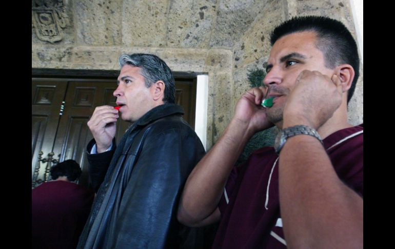 Jalisco | Protestan simultáneamente en cuatro dependencias gubernamentales para exigir recursos La UdeG ensordece con silbidos al Gobierno estatal Protestan simultáneamente en cuatro dependencias gubernamentales para exigir recursos Por: EL INFORMADOR 7 de diciembre de 2010 - 01:56 hs Médicos y personal de los Hospitales Civiles silbaron al igual que en las otras movilizaciones estudiantiles. E. BARRERA / GUADALAJARA, JALISCO (07/DIC/2010).- A manera de protesta, estudiantes, profesores y dirigentes de la Universidad de Guadalajara (UdeG) soplaron silbatos la mañana de ayer en cuatro dependencias del Gobierno del Estado. Alrededor de las 10:00 horas, manifestantes exigieron a silbidos el pago de recursos que el Ejecutivo adeuda a la UdeG en Casa Jalisco; en las secretarías de Finanzas y de Gobierno, en el Centro de la ciudad; y en la Secretaría de Promoción Económica (Seproe), ubicada sobre la calle López Cotilla, casi esquina con Avenida Chapultepec. En este último lugar, alrededor de 150 estudiantes de las preparatorias 13, 16 y Tonalá Norte permanecieron accionando sus silbatos por alrededor de una hora, provocando un ruido ensordecedor para quienes por ahí pasaban. “Aunque a nosotros nos ensordece, esperamos que al Gobierno del Estado le destape los oídos”, asestó el secretario general del Sindicato de Trabajadores Académicos de la UdeG (STAUdeG), Roberto López González. La idea original, explicó el sindicalista, era la de ingresar y recorrer silbando algunos pisos del edificio de la Seproe, pero personal de seguridad cerró las puertas del recinto antes de que esto sucediera. No obstante, poco más tarde, el coordinador general de Competitividad Empresarial de la dependencia, Guillermo Espinoza Aranda, bajó a la recepción del inmueble, donde recibió a López González, quien iba rodeado por alumnos y profesores de la UdeG. Luego de explicar el motivo de la presencia de los universitarios en el lugar, el líder del STAUdeG reclamó al funcionario estatal que una empleada de la secretaría estuviese grabando de cerca el rostro de los estudiantes que ahí se manifestaban. Por ello, responsabilizó tanto al secretario general de Gobierno, Fernando Guzmán Pérez Peláez, como al mandatario estatal, Emilio González Márquez, de lo que pudiera sucederle a los participantes de la protesta. Espinoza Aranda, por su parte, explicó que el titular de la Seproe, Alonso Ulloa Vélez, no se encontraba en la ciudad por asistir a un evento con varios secretarios de otras entidades de la república. Al término de su encuentro, López González pidió a los estudiantes estar atentos en torno al lugar donde se realizará la “resistencia civil pacífica” de hoy martes. En Casa Jalisco alrededor de 200 médicos y personal administrativo de los Hospitales Civiles de Guadalajara se manifestaron de igual forma, accionando silbatos y gritando consignas en contra del gobernador. Además, cerca de 200 estudiantes de las preparatorias 9, 14 y Vocacional, ingresaron al edificio de la Secretaría de Finanzas por espacio de media hora. Entregan otro cheque El coordinador general de Competitividad Empresarial de la Secretaría de Promoción Económica (Seproe), Guillermo Espinoza Aranda, entregó al mediodía de ayer un cheque a la Universidad de Guadalajara por la cantidad de 311 mil 279 pesos, en las instalaciones de Rectoría de la casa de estudios. Sin dar más detalles, el emisario del Gobierno del Estado explicó que dicha entrega corresponde a una aportación extraordinaria que hace el Ejecutivo de Jalisco en apoyo de un proyecto que fue presentado por la UdeG de nombre “Consultorías para empresas en proceso de incubación y actividades en equipo de cómputo, telecomunicaciones y laboratorios de energías alternas”. El documento mercantil fue recibido por el director de Finanzas de la Universidad, Gustavo Cárdenas Cutiño. Temas Gobierno del Estado UdeG Seproe Presupuesto UdeG Lee También Cobro de impuestos saca a flote al Gobierno federal Claudia Sheinbaum supervisa las zonas más afectadas en Veracruz Reaparece Andy López tras su última polémica Tras pacto con Coca Cola, México acuerda bajar impuestos a refrescos Recibe las últimas noticias en tu e-mail Todo lo que necesitas saber para comenzar tu día Registrarse implica aceptar los Términos y Condiciones